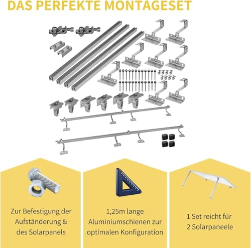 - Komplettes Zubehör: Inklusive 2 Aluminium-Schienenverbinder mit Stahlschrauben sowie 2 Aluminium-Erdungsklemmen für eine vorschriftsgemässe Erdung.