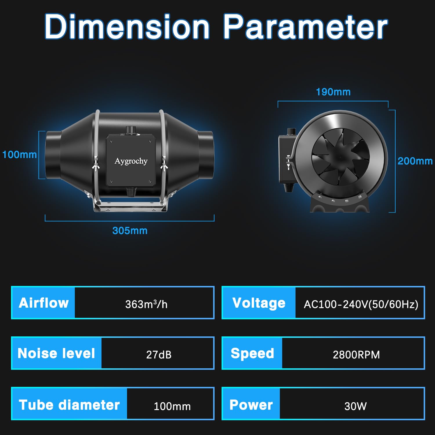 Aygrochy Rohrventilator 100mm EC Regelbar 363 m³/h