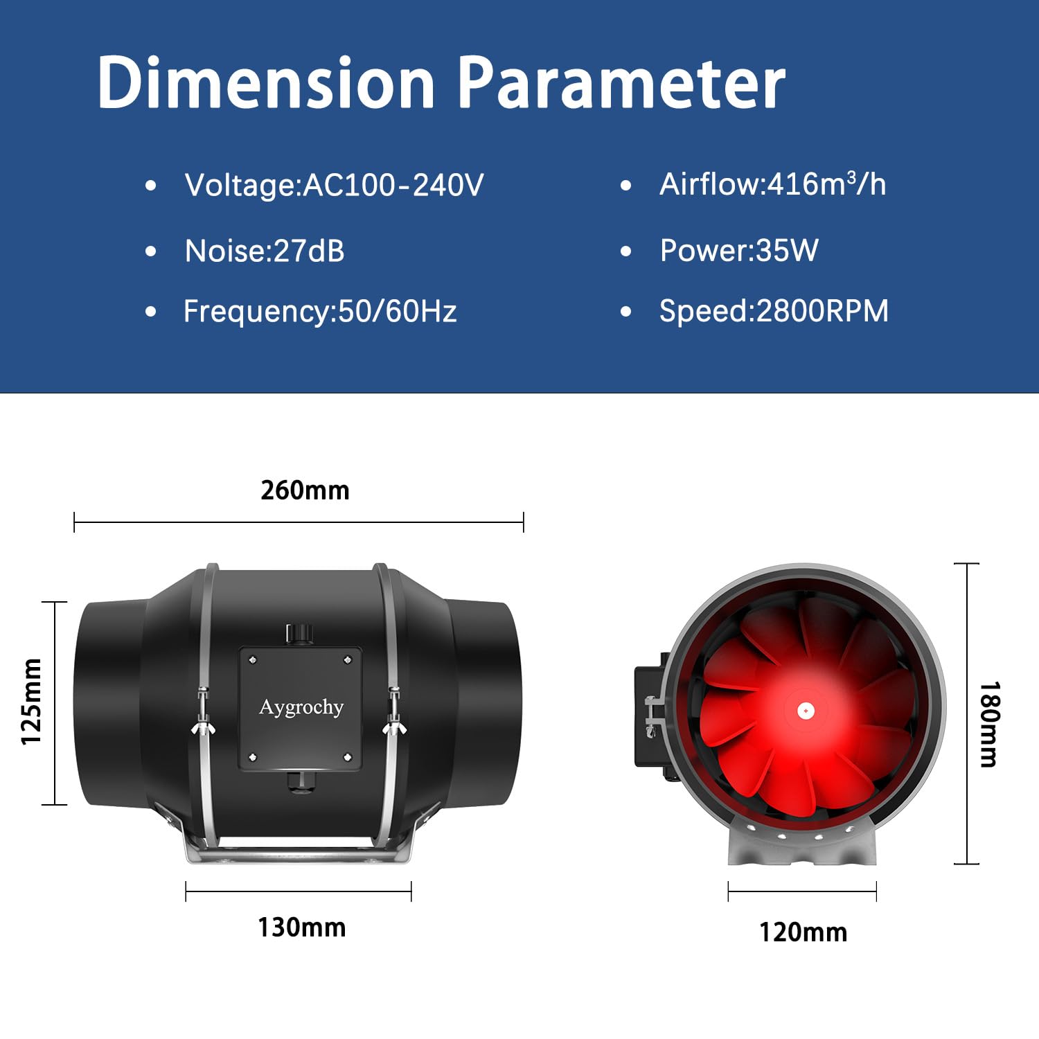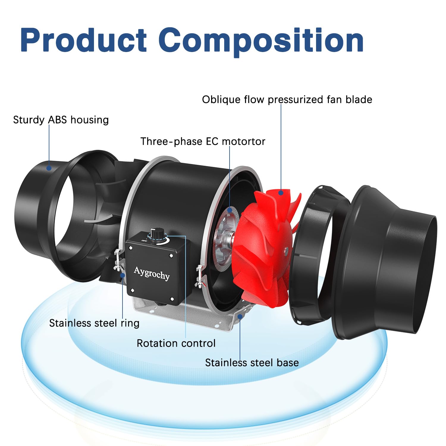 Der Aygrochy Rohrventilator mit 125 mm Durchmesser bietet eine leistungsstarke und zugleich energieeffiziente Lösung für Ihre Belüftungsanforderungen. Ausgestattet mit einem modernen EC-Motor, garantiert er einen zuverlässigen und stabilen Betrieb für eine Vielzahl von Anwendungen.