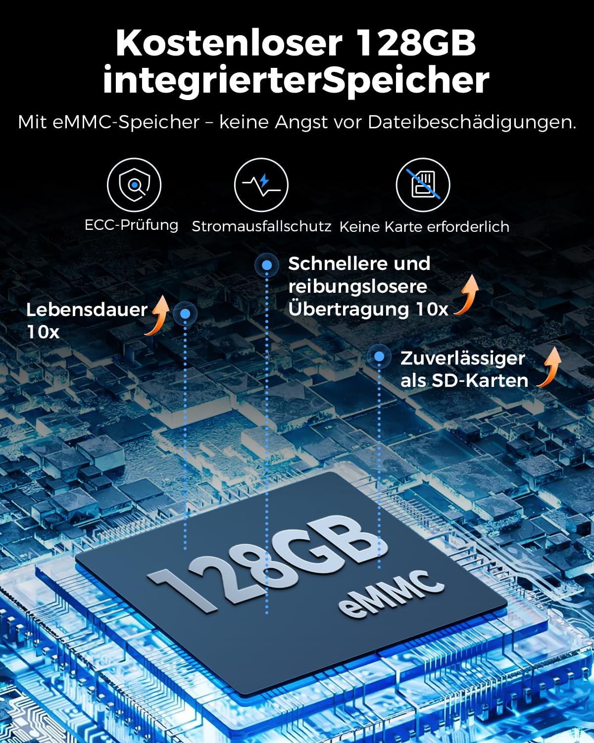 - Integrierter 128GB eMMC-Speicher: Kein Bedarf an einer separaten SD-Karte dank schnellem und zuverlässigem internem Speicher.