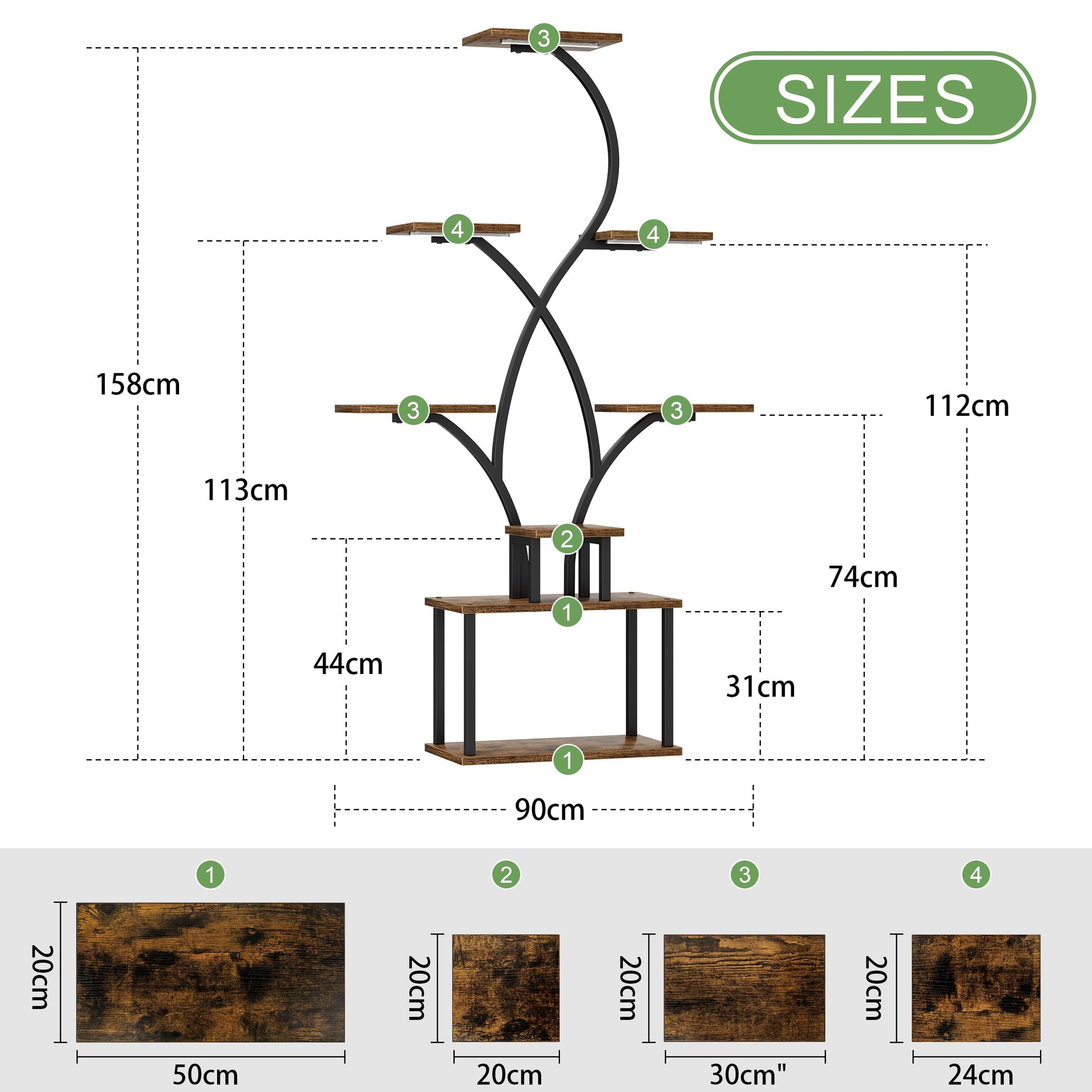 - Grosszügiger Platz: 8 Ebenen auf einer Höhe von 158 cm bieten reichlich Raum für Pflanzen, Bücher oder Dekorationsobjekte.
