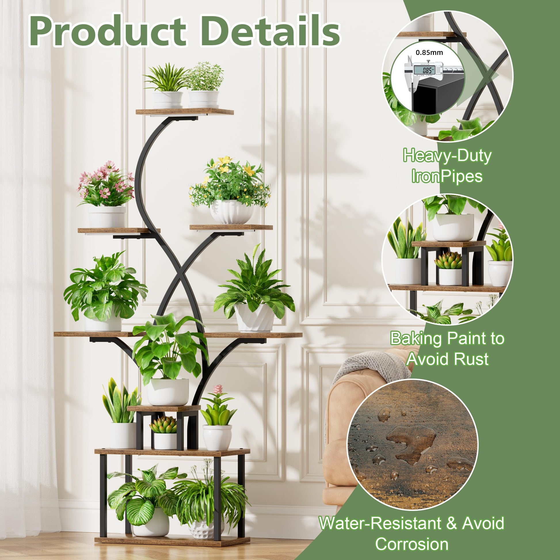 Mit seinem hohen und platzsparenden Design können Sie ungenutzte Ecken stilvoll beleben. Die acht Ablageflächen ermöglichen eine ansprechende und übersichtliche Präsentation Ihrer Pflanzenvielfalt. Die solide Bauweise aus Metall und Holz garantiert dabei Langlebigkeit und die nötige Stabilität für Ihre Gewächse.