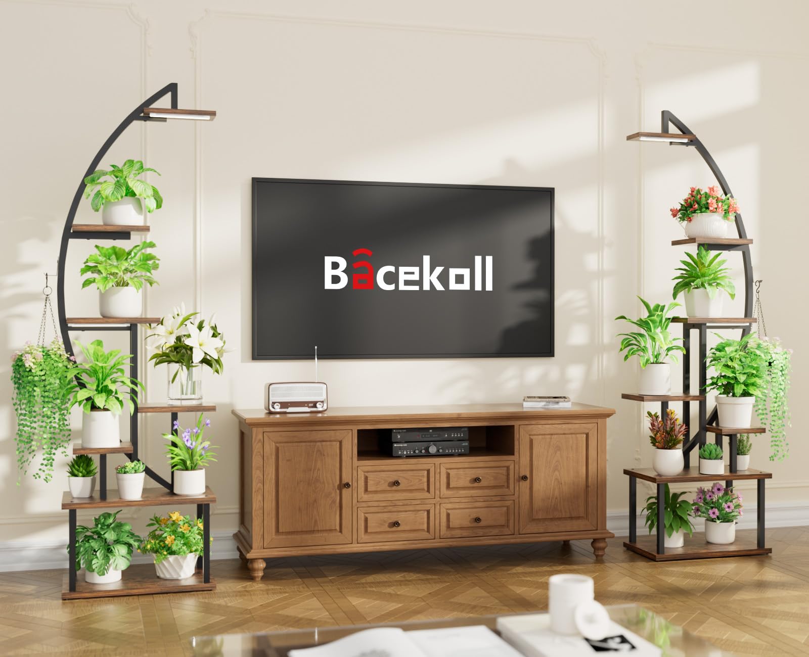 BACEKOLL Pflanzenständer mit Wachstumslicht – 7 Ebenen Schwarz 2er Set