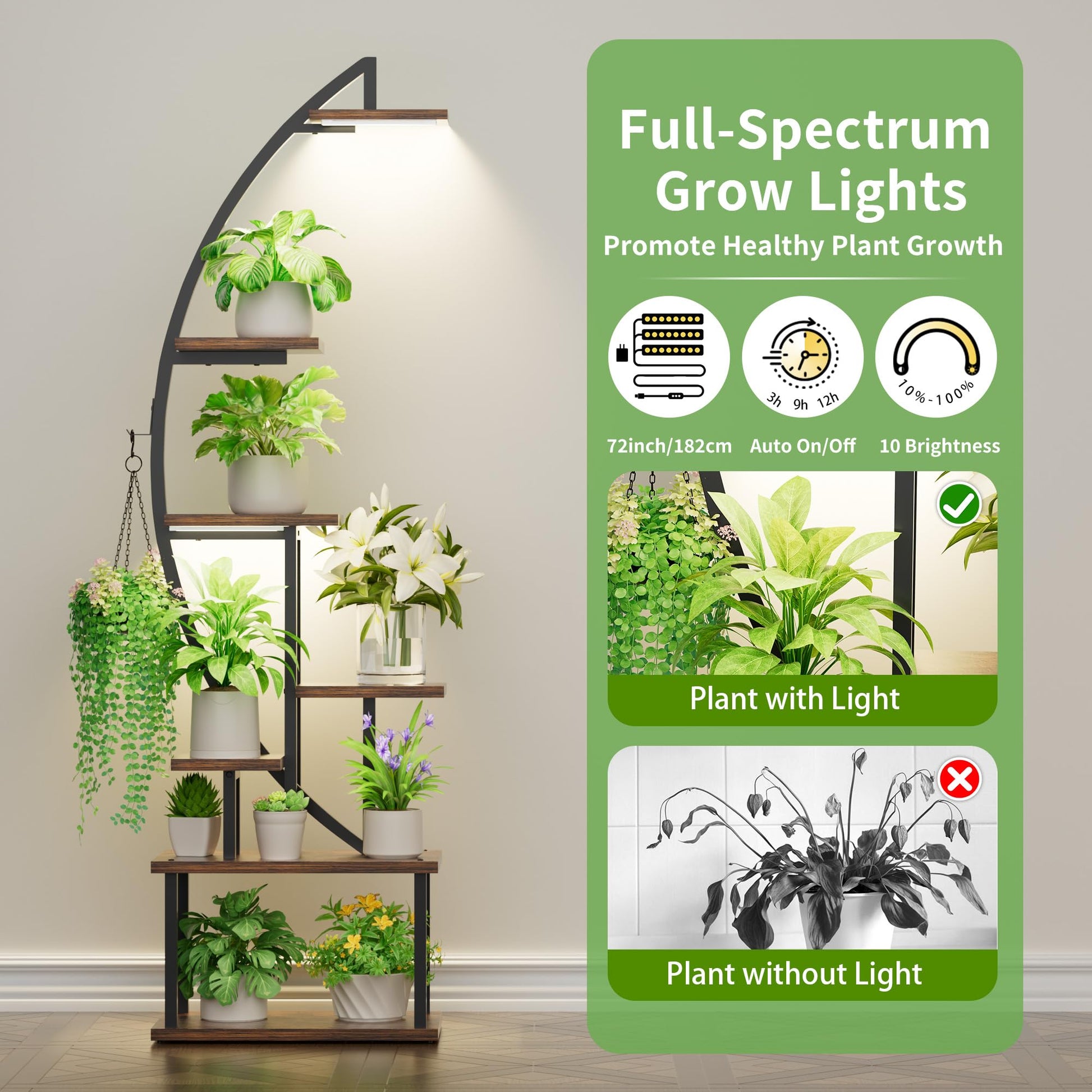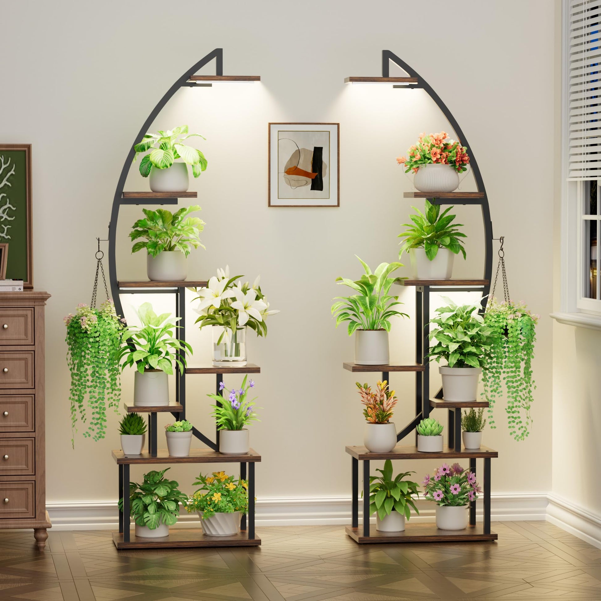 Bringen Sie Ihre Pflanzensammlung mit diesem Set aus zwei stilvollen, 7-stöckigen Pflanzenregalen optimal zur Geltung. Dank der integrierten Wachstumslampen gedeihen Ihre grünen Lieblinge an jedem beliebigen Ort in Ihrem Zuhause, unabhängig von der Sonneneinstrahlung.
