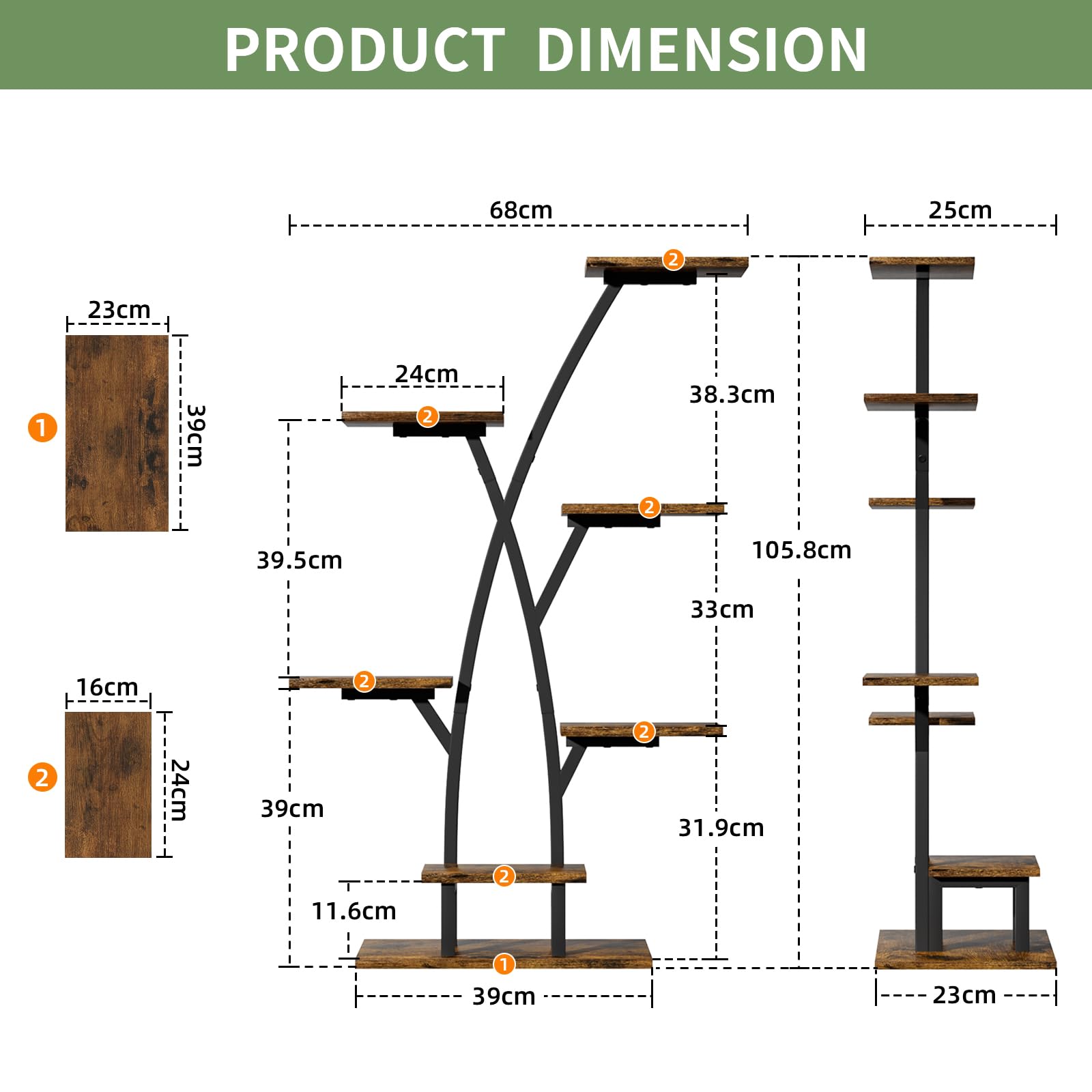 - Stabile 7-Ebenen-Konstruktion: Mit einer Höhe von 105 cm und einer breiten, soliden Basis bietet dieses Regal sicheren Stand und viel Platz für diverse Pflanzen.