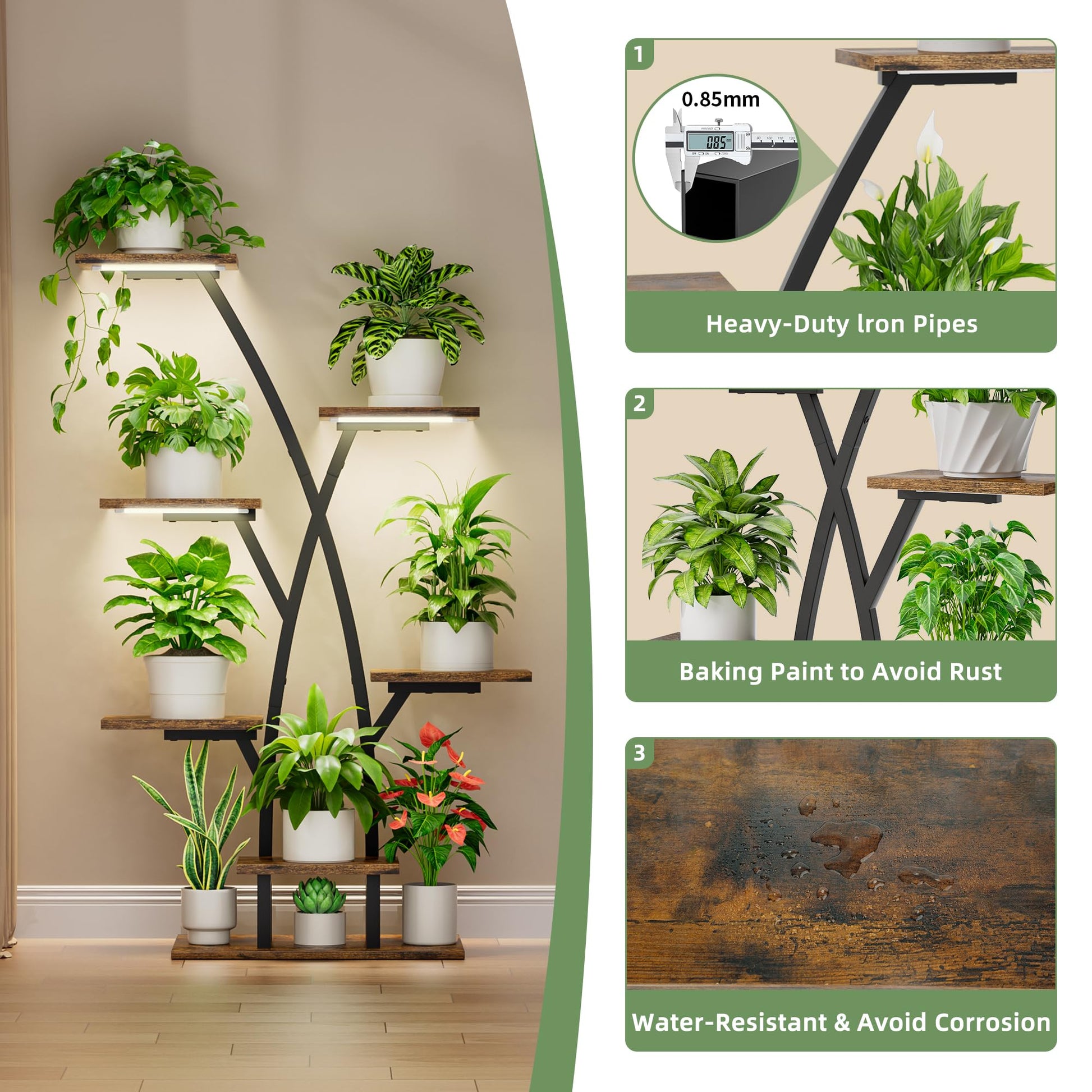 Präsentieren Sie Ihre Pflanzen stilvoll und fördern Sie deren Wachstum mit diesem eleganten Pflanzenständer. Die Kombination aus schwarzem Metall und Holzoptik fügt sich nahtlos in jedes Wohnambiente ein und bietet auf sieben Ebenen ausreichend Platz für Ihre grünen Lieblinge.