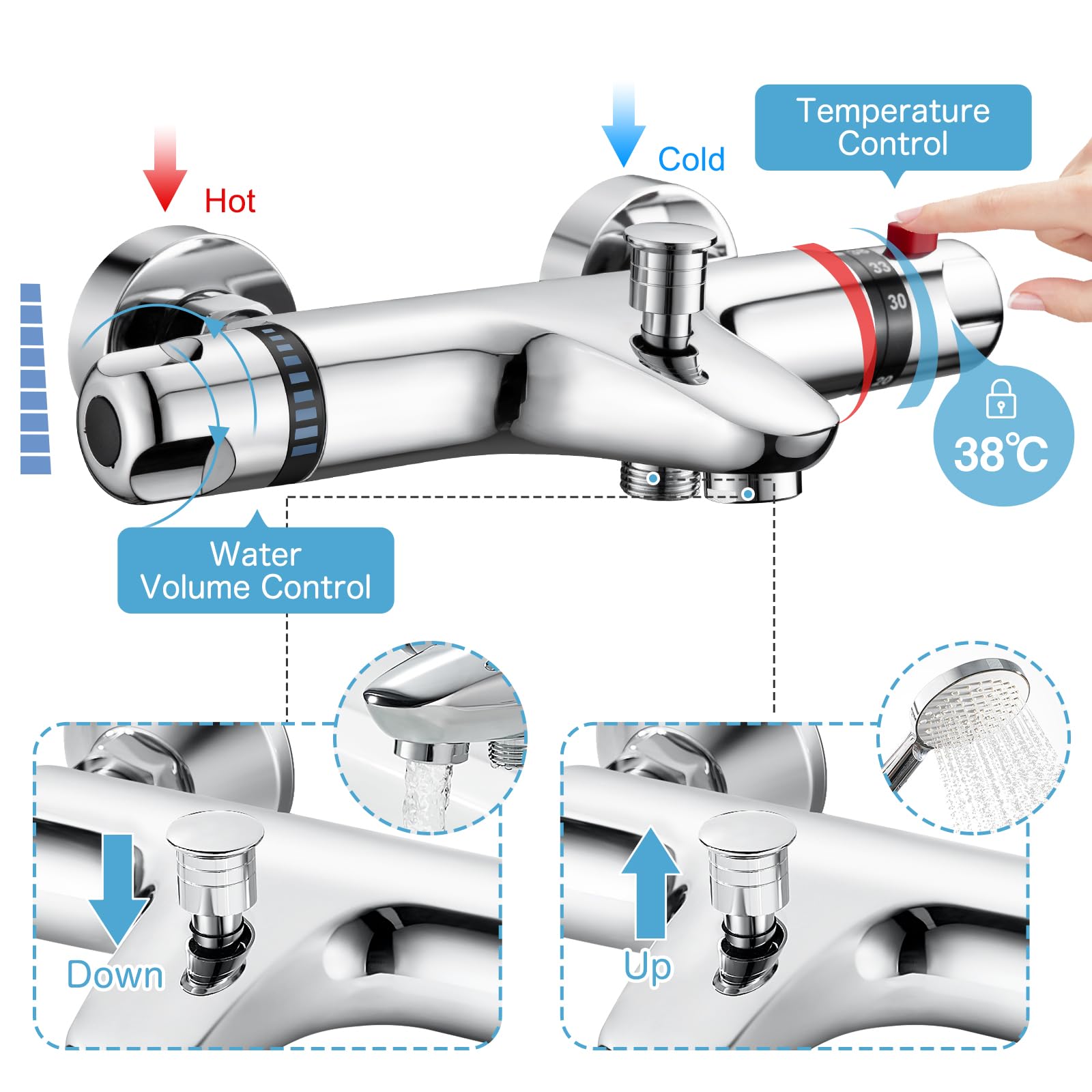 Klassik Thermostat Dusch-/Wannenarmatur Aufputz Chrom 38°C