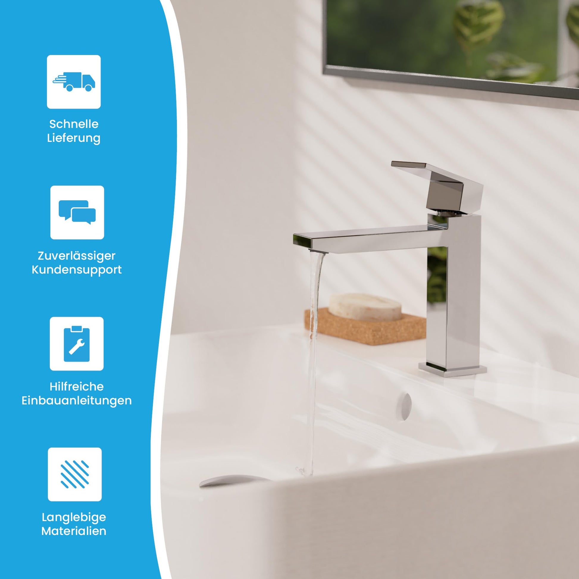 Die Installation dieses Einhebelmischers gestaltet sich dank des vollständigen Lieferumfangs schnell und mühelos. Sie erhalten alles, was Sie für den direkten Anschluss benötigen, ohne zusätzliches Zubehör kaufen zu müssen. Die im Inneren verbaute, hochwertige Keramikkartusche garantiert eine zuverlässige und seidenweiche Funktion über viele Jahre hinweg.
