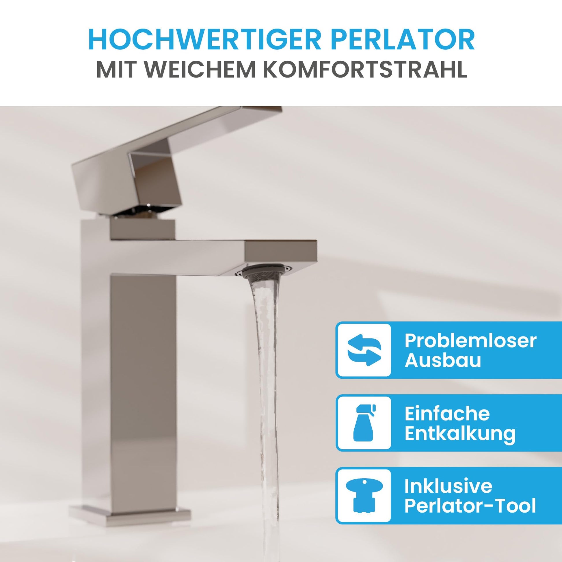 - Hochwertiger Neoperl Perlator: Der Luftsprudler mit seiner speziellen Honeycomb-Struktur formt einen angenehmen, gut durchlüfteten Wasserstrahl, reduziert Kalkablagerungen und arbeitet dabei besonders geräuscharm.