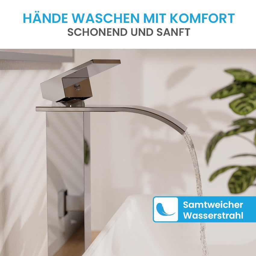 Das aussergewöhnliche Design, das an einen Wasserfall erinnert, ist ein echter Blickfang an jedem Lavabo. Der breite Wasserstrahl benetzt die Hände sanft und sorgt für ein angenehm weiches Hautgefühl, das den Alltag aufwertet. Wählen Sie zwischen einer klassischen Chrom-Optik oder einem modernen, matten Schwarz, um die Armatur perfekt auf Ihren Einrichtungsstil abzustimmen.