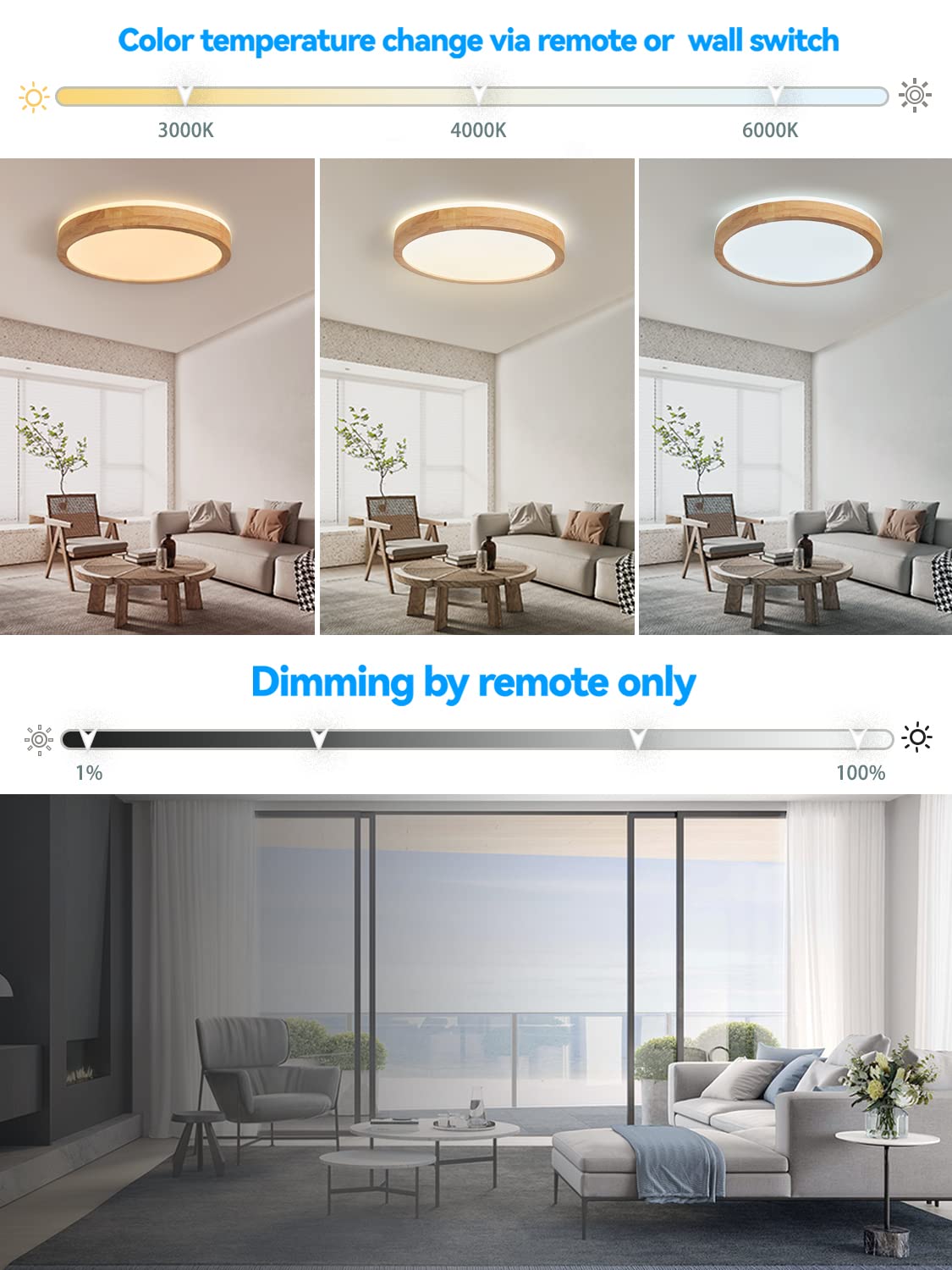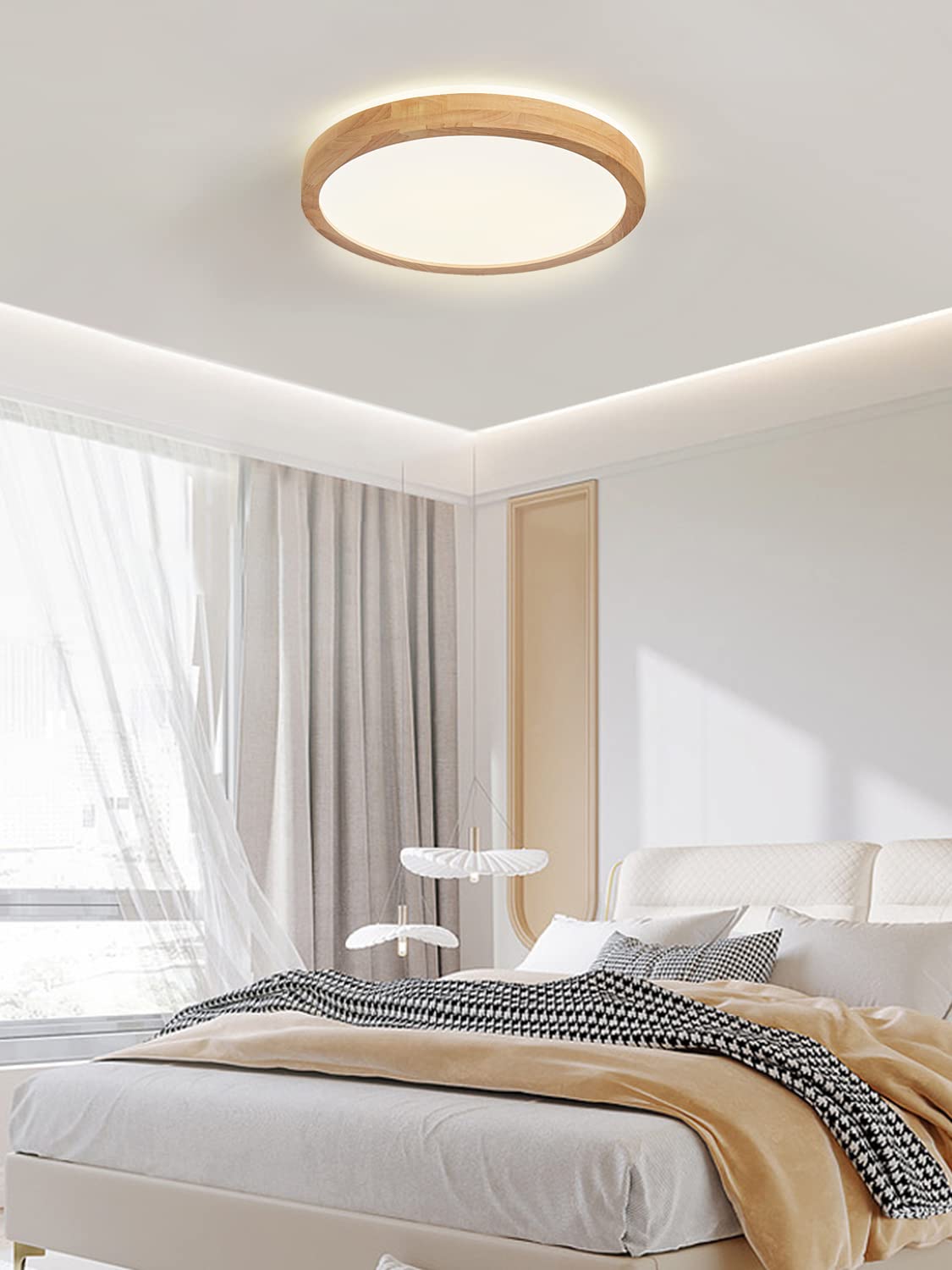 Baerolc LED Deckenleuchte Holz 40CM Rund Dimmbar – mit Fernbedienung