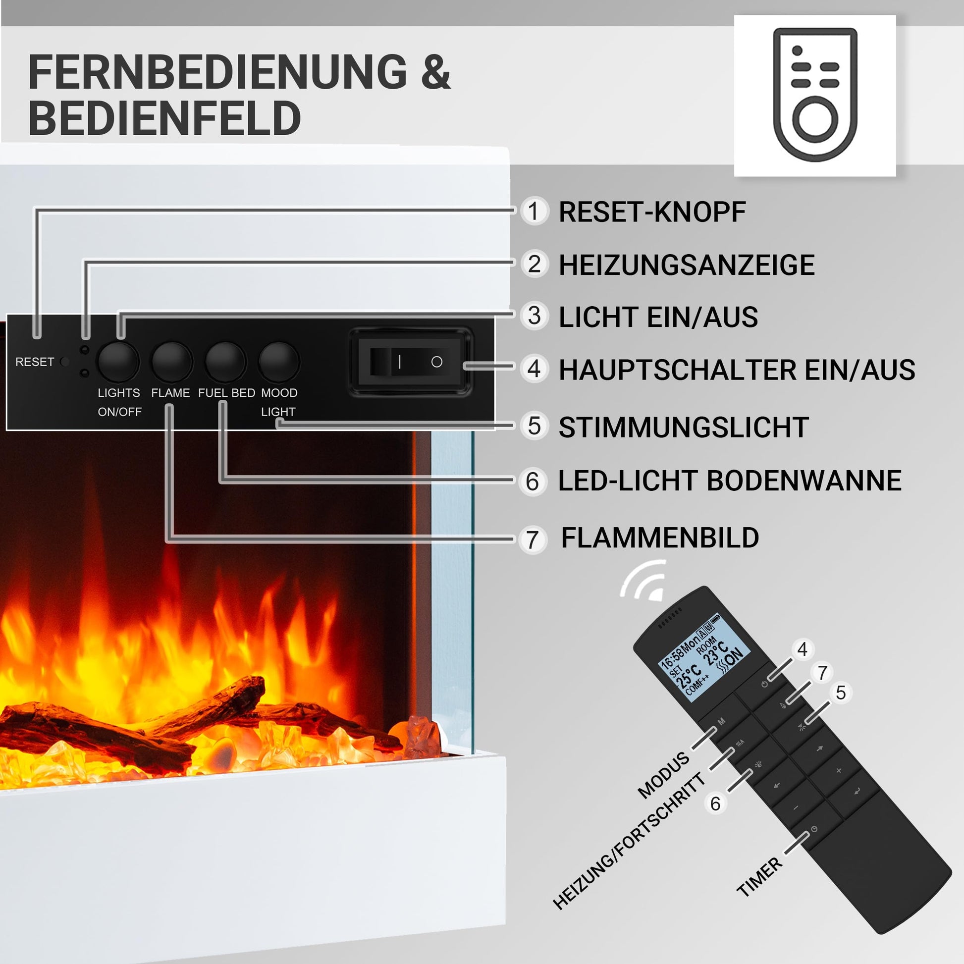 BALDERIA Alva elektrischer Wandkamin Heizfunktion – Weiss