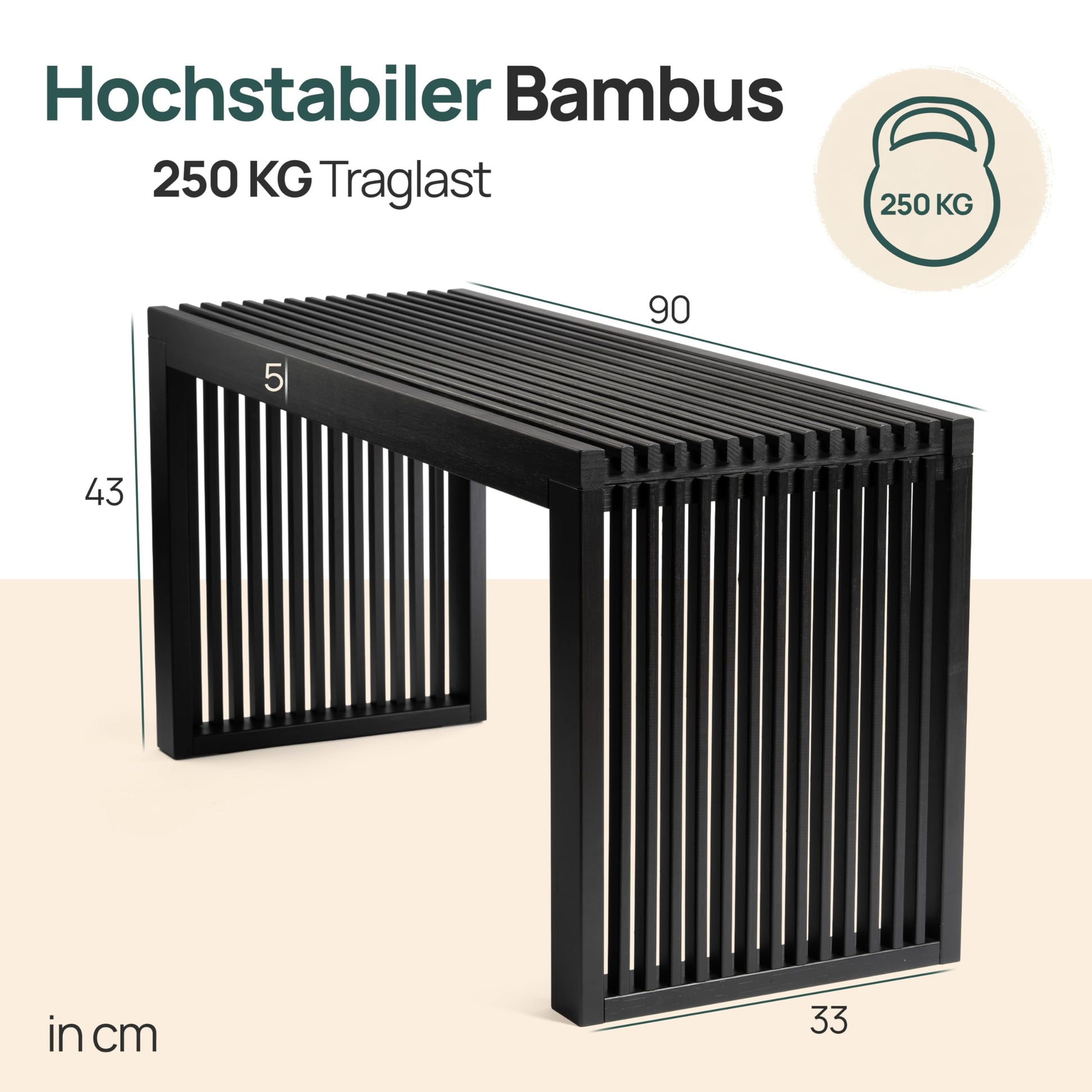 BAM BOO BOX Sitzbank - Modell Bambus Schwarz 90x33x43 cm