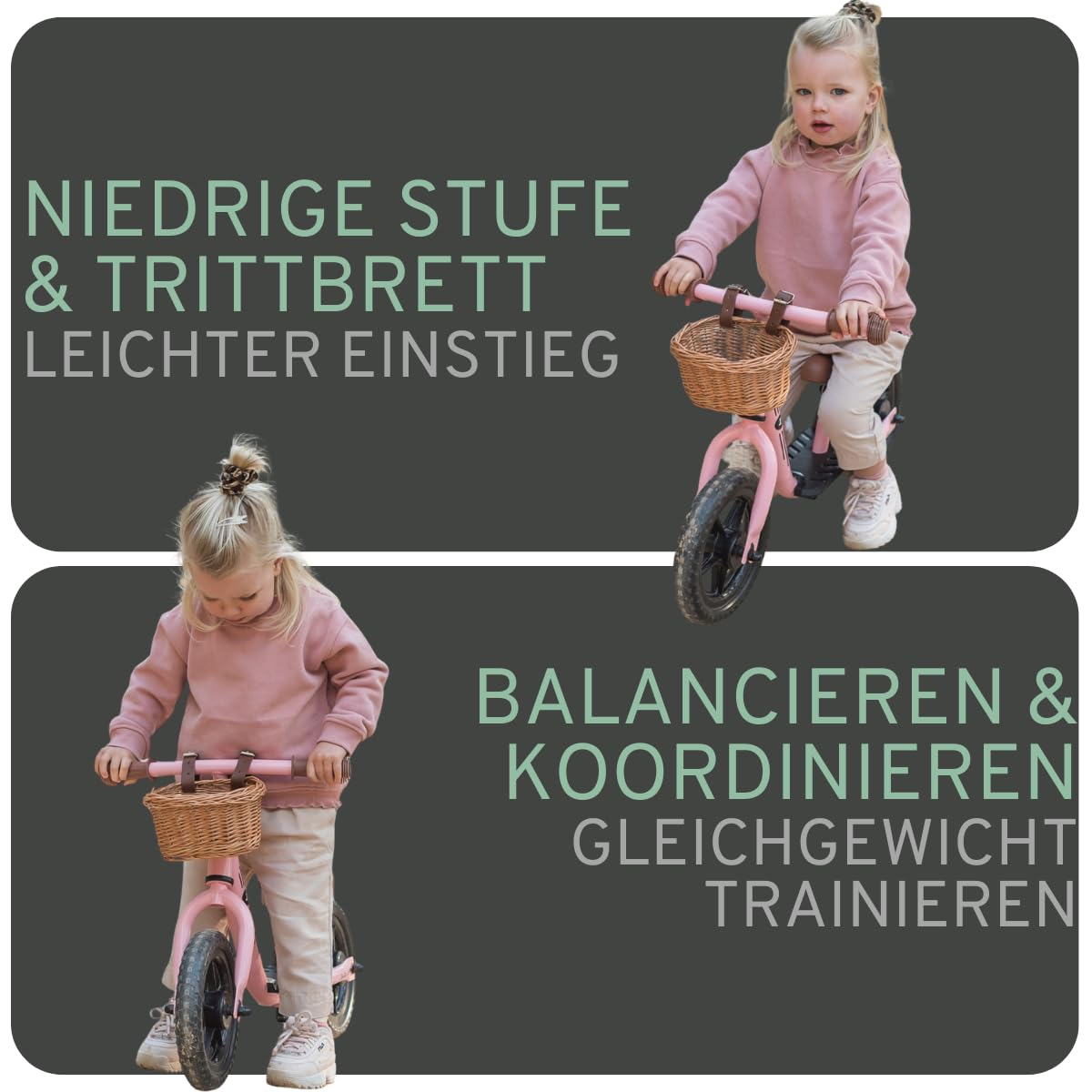 - Inklusive Weidenkorb: Ein praktischer und hübscher Korb am Lenker bietet Platz für Spielsachen und kleine Schätze.