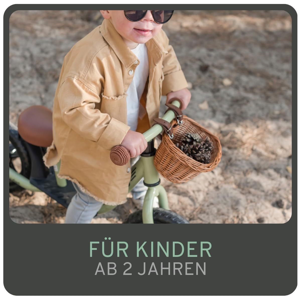 - Inklusive Weidenkörbchen: Ein praktischer und hübscher Korb am Lenker bietet Platz für Spielsachen und kleine, unterwegs gefundene Schätze.