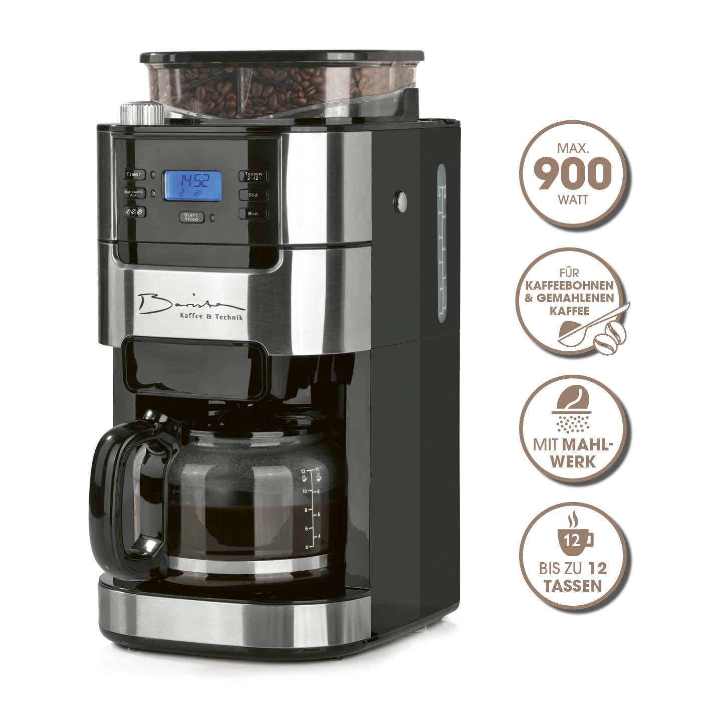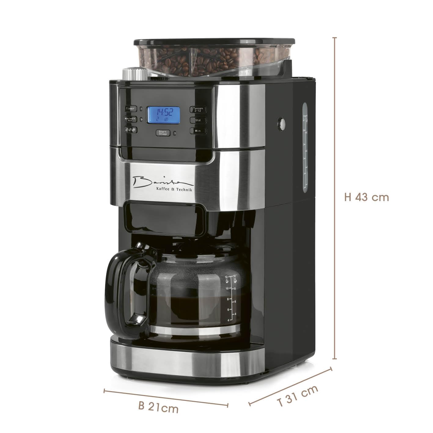 Barista Filterkaffeemaschine Mahlwerk 10 Tassen - Edelstahl
