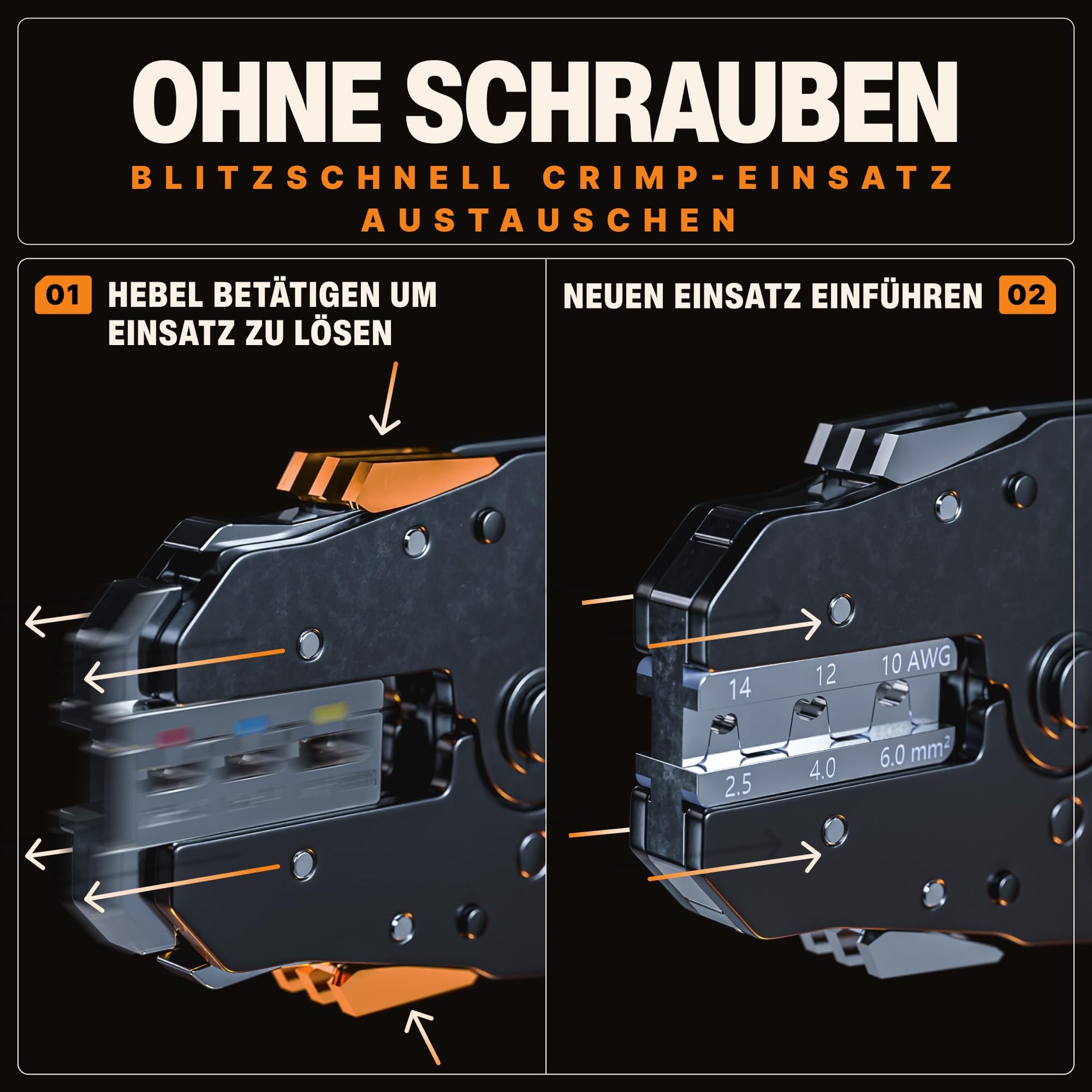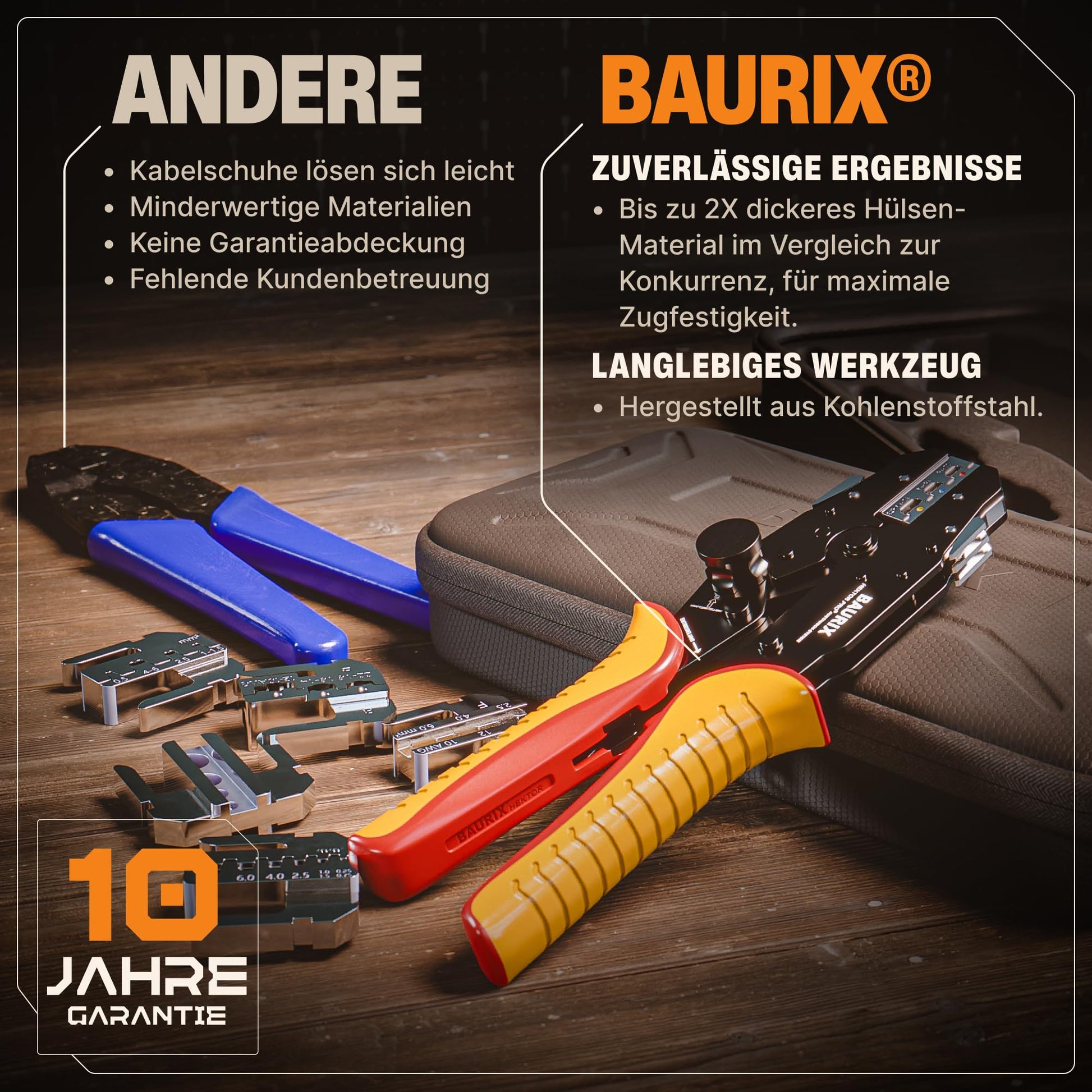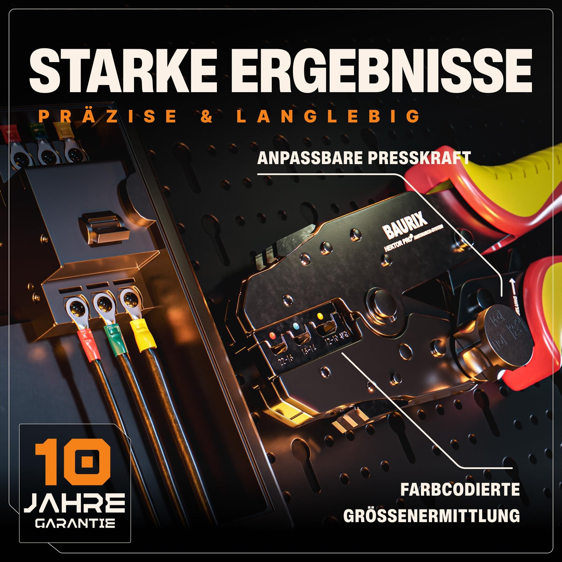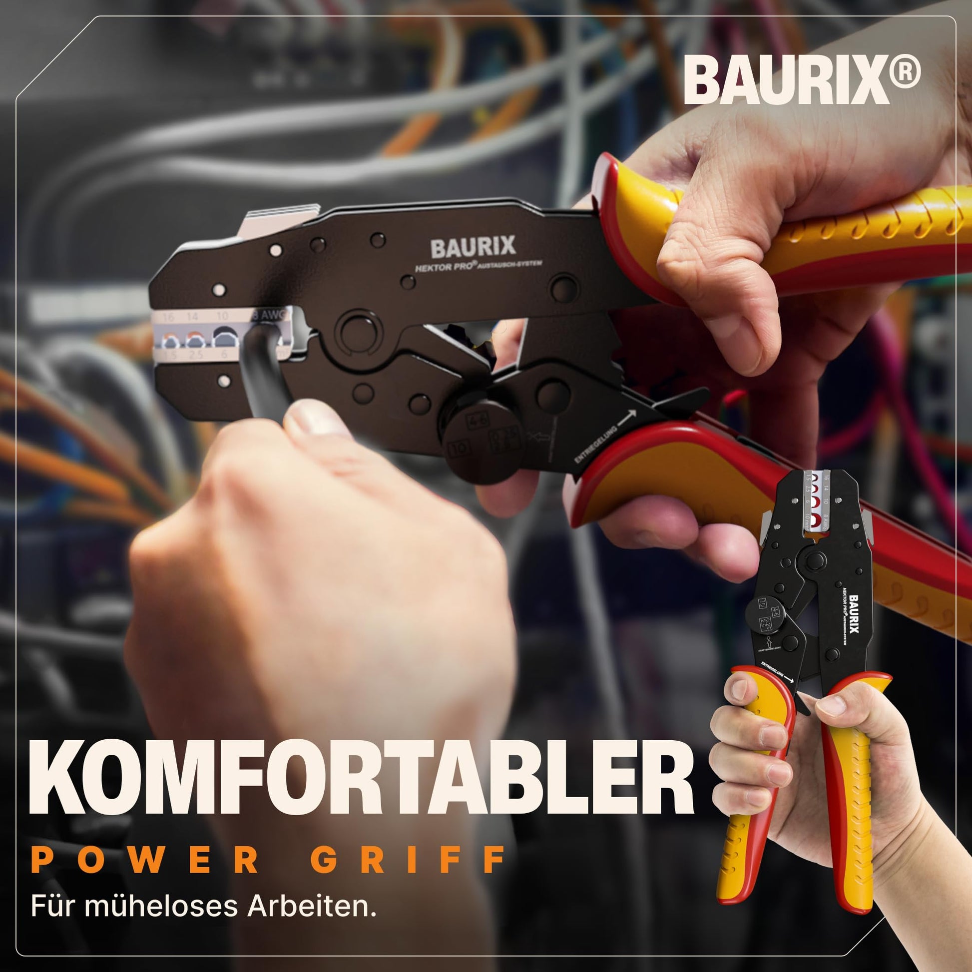 BAURIX® HEKTOR PRO Crimpzange - 6 Wechselbacken für Elektrik