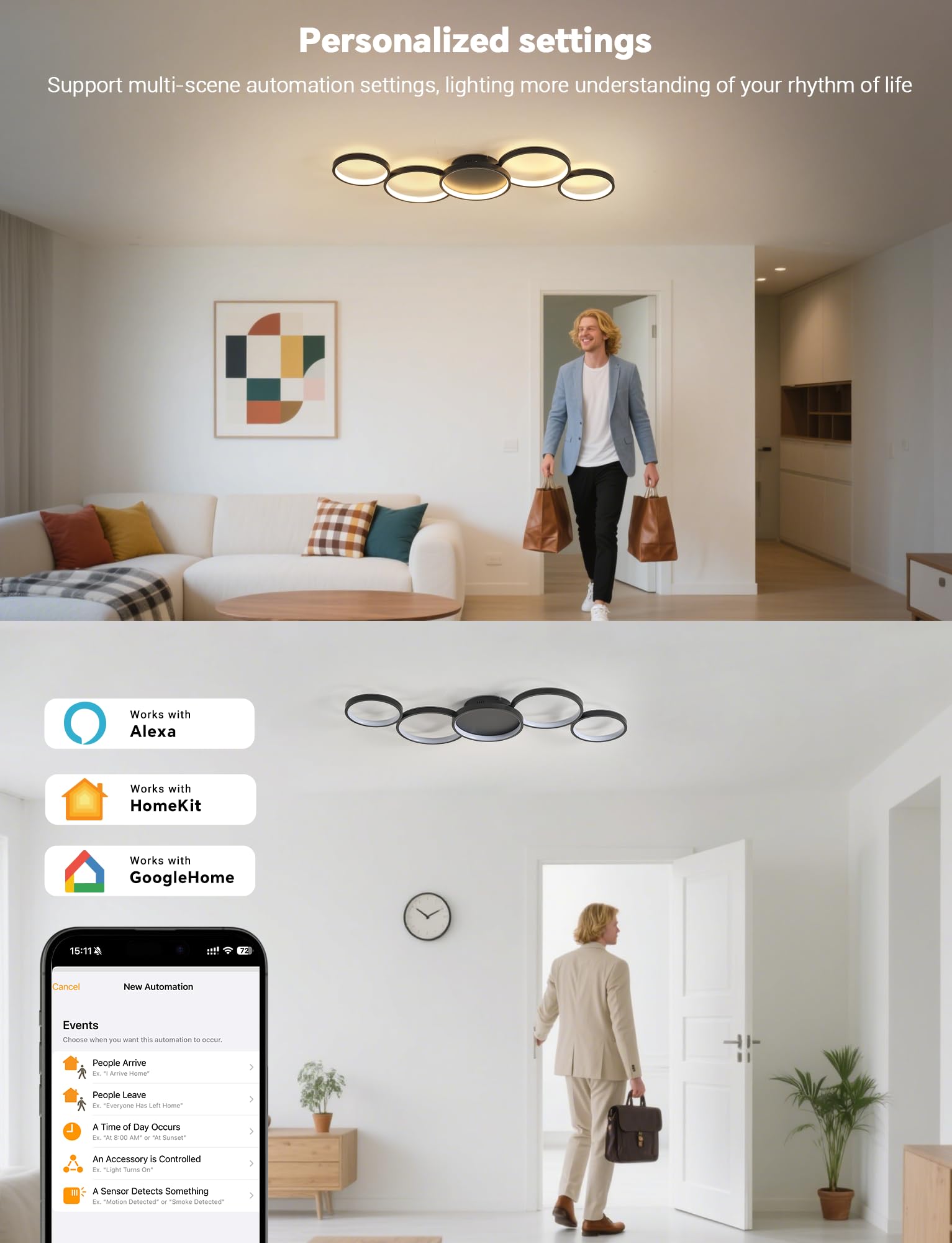 Dank des Matter-Standards fügt sich diese Deckenlampe mühelos in Ihr bestehendes Smart Home ein. Sie ermöglicht eine zentrale Steuerung all Ihrer vernetzten Geräte, unabhängig von der Marke. Erstellen Sie kinderleicht individuelle Lichtszenen und automatisierte Abläufe, die perfekt auf Ihren Tagesrhythmus abgestimmt sind – vom sanften Aufwachen bis zur entspannten Abendstimmung.