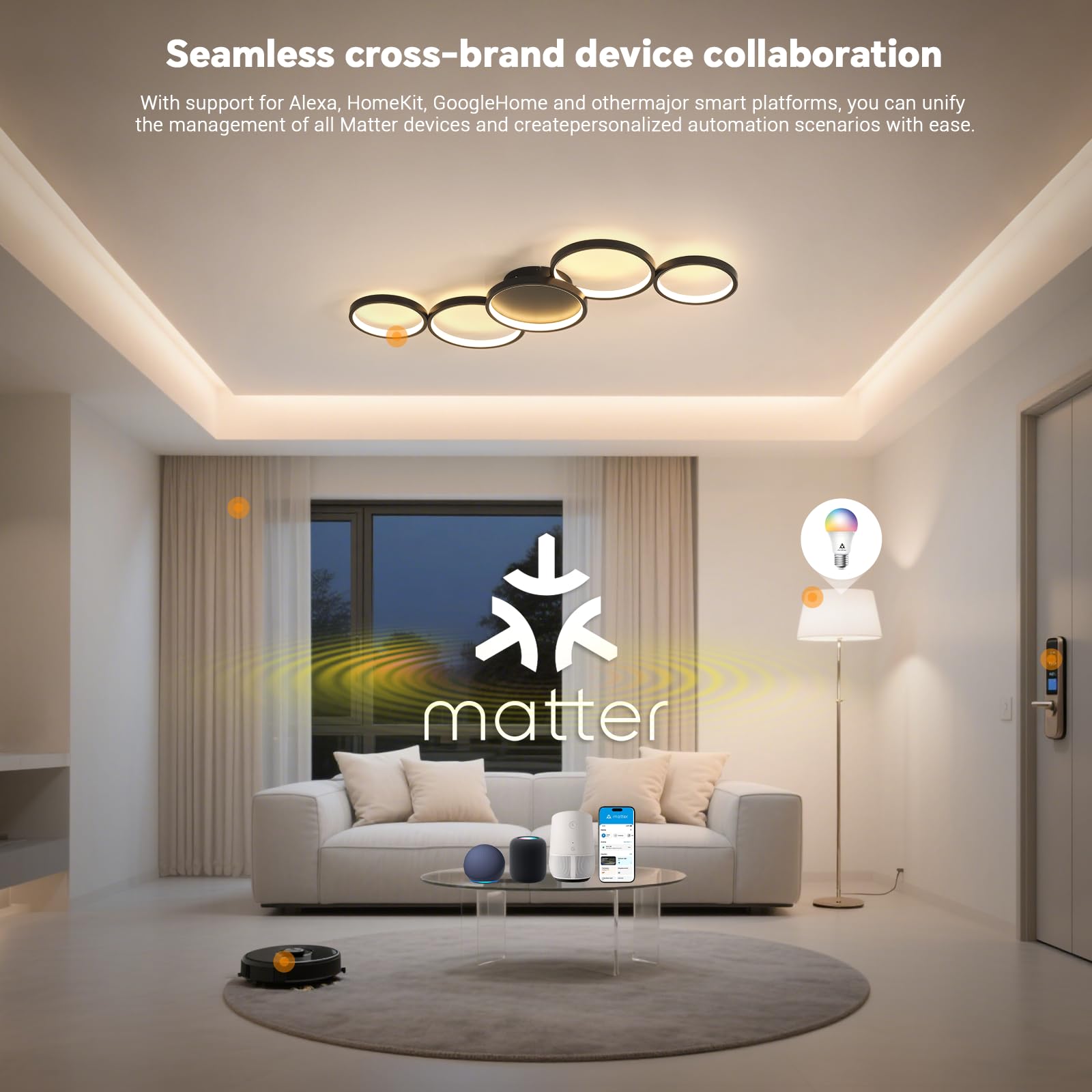 - Blitzschnelle Einrichtung: Verbinden Sie die Deckenlampe in Sekundenschnelle durch einfaches Scannen des Matter-QR-Codes mit Ihrem kompatiblen Hub.