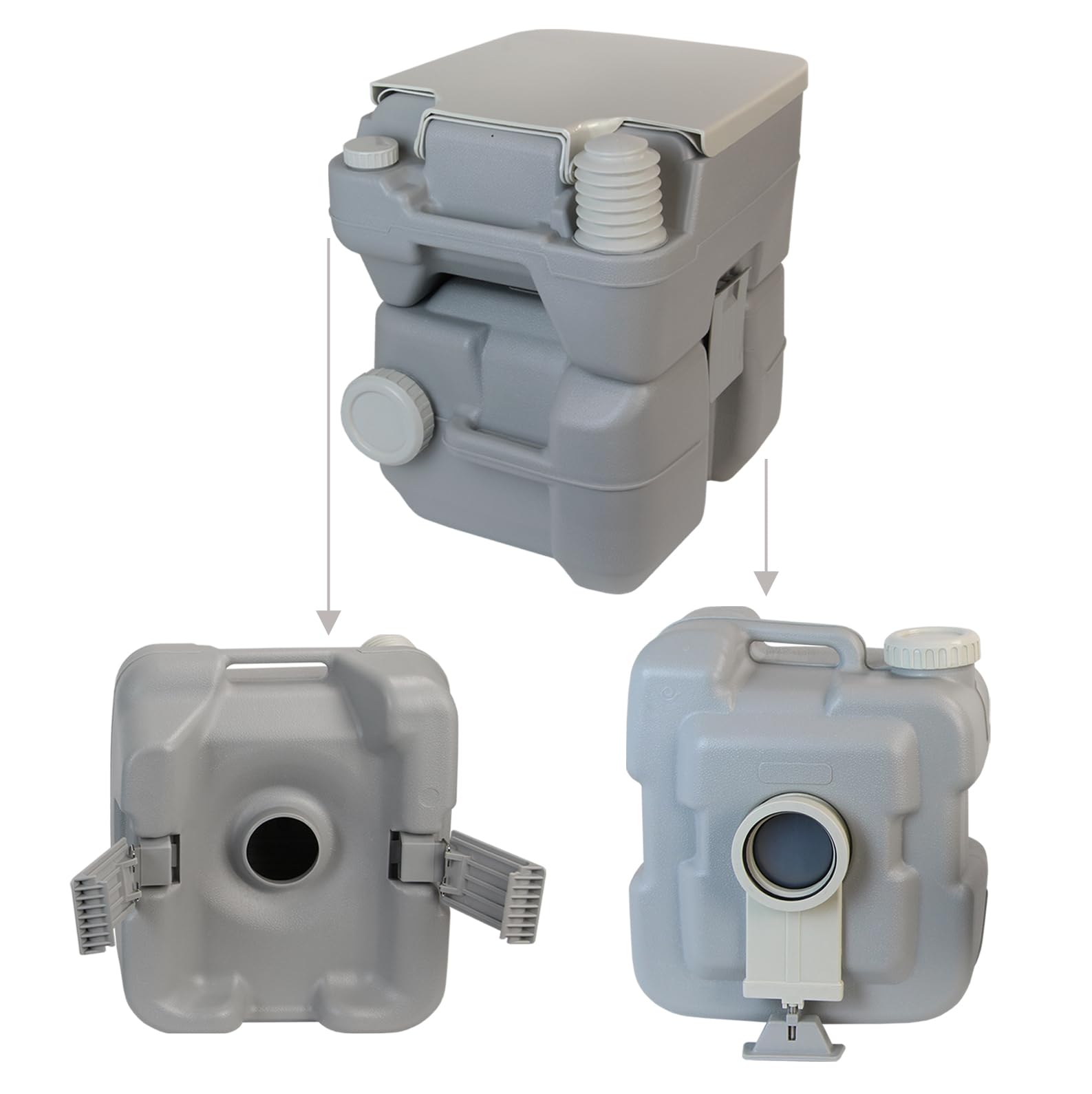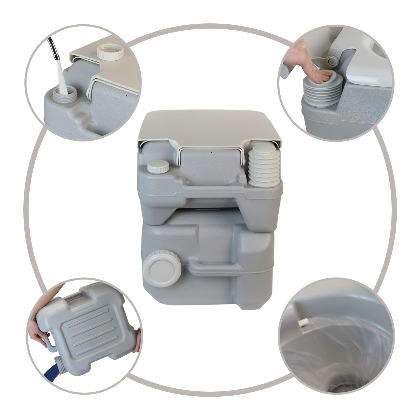 - Grosses Fassungsvermögen: Ausgestattet mit einem 10-Liter-Frischwassertank und einem 20-Liter-Fäkalientank, was für bis zu 60 Toilettengänge ausreicht.