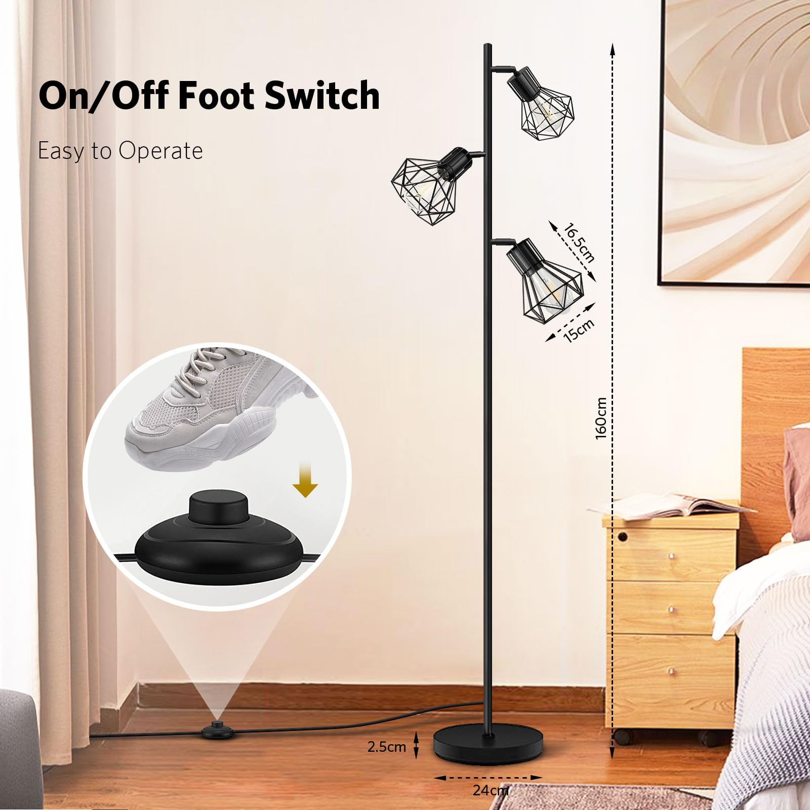 BBHome Industrielle Stehlampe verstellbare Käfigköpfe Schwarz