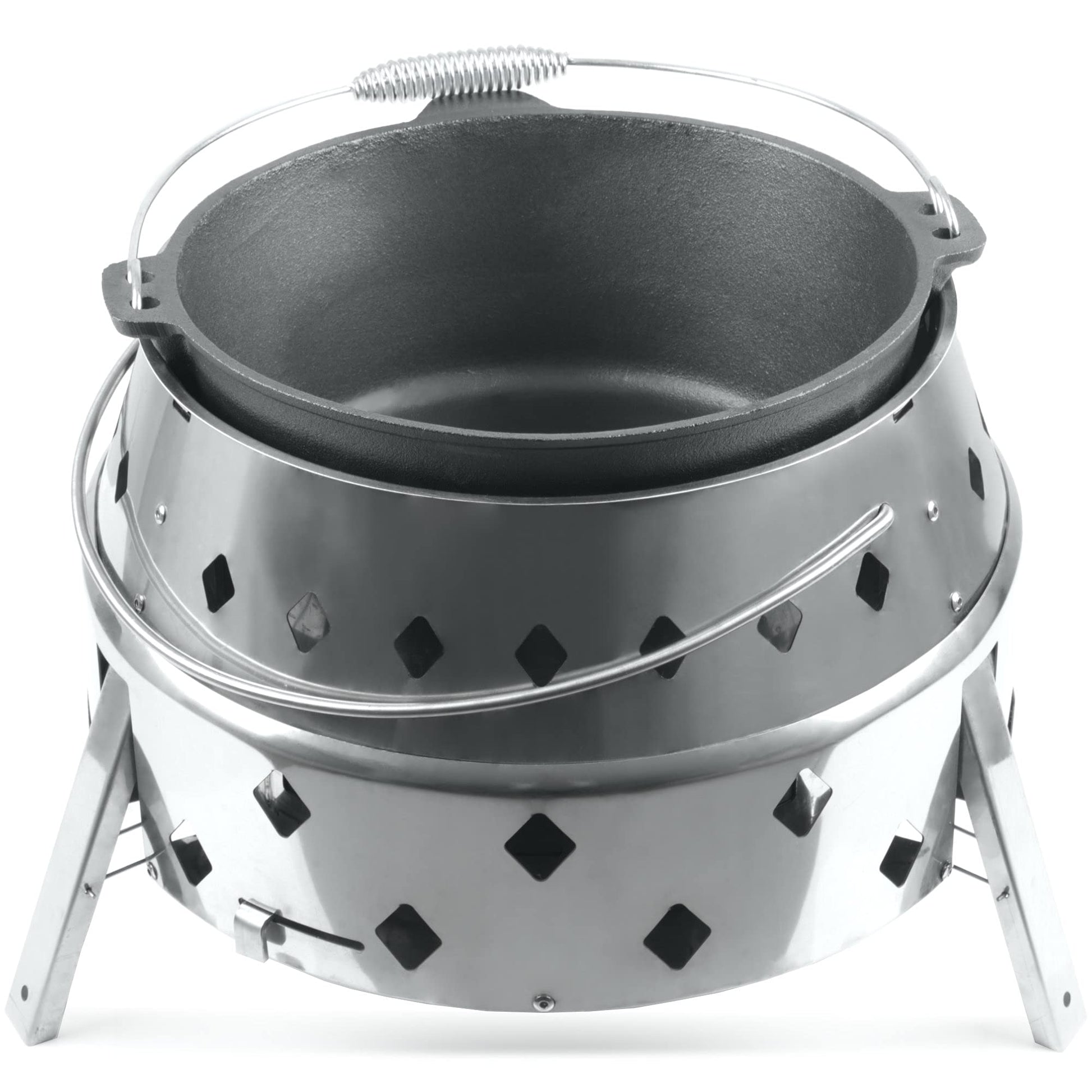 - 3-in-1-Funktionalität: Ein einziges Gerät dient als robuste Dutch Oven Station, stimmungsvolle Feuerstelle und als klassischer Holzkohlegrill.