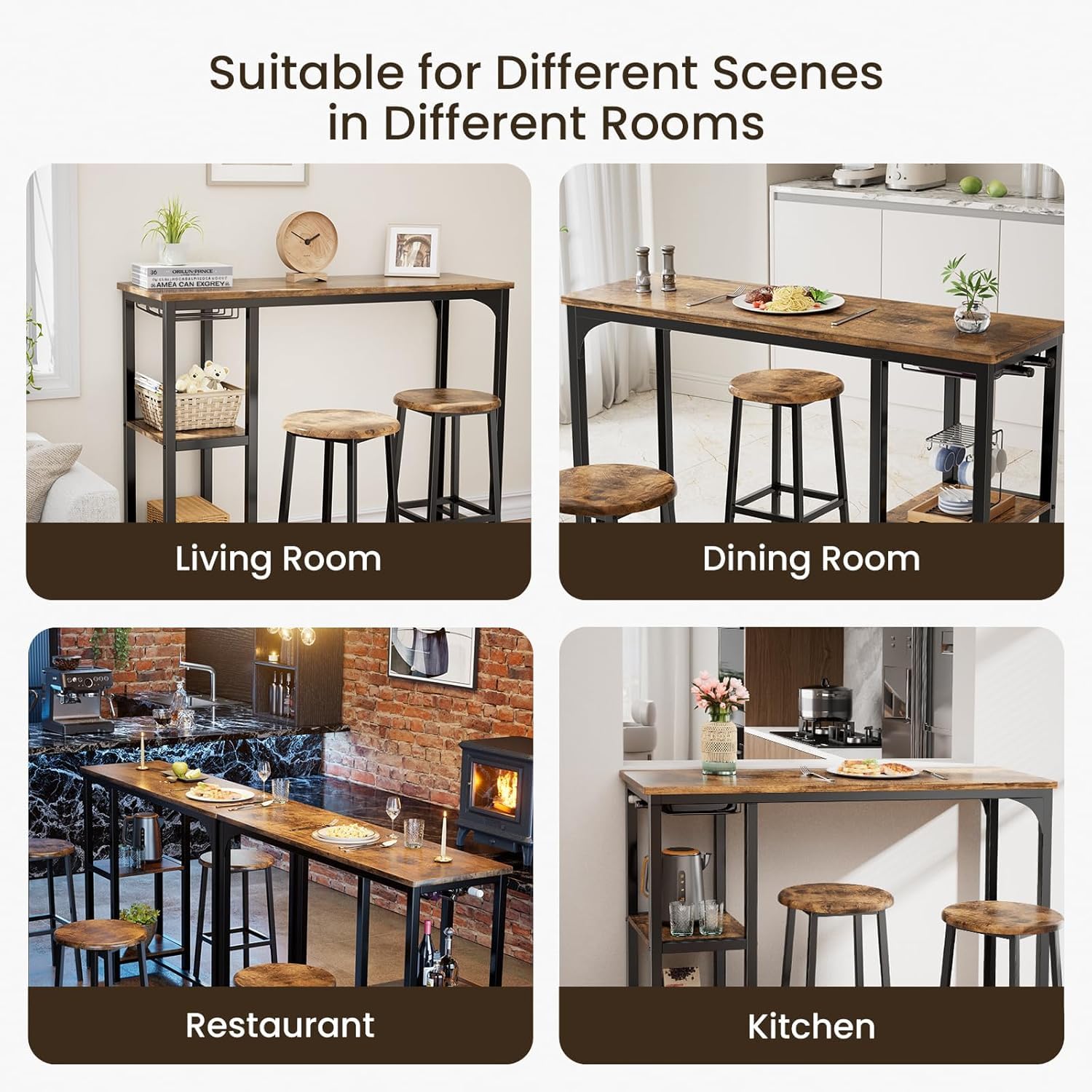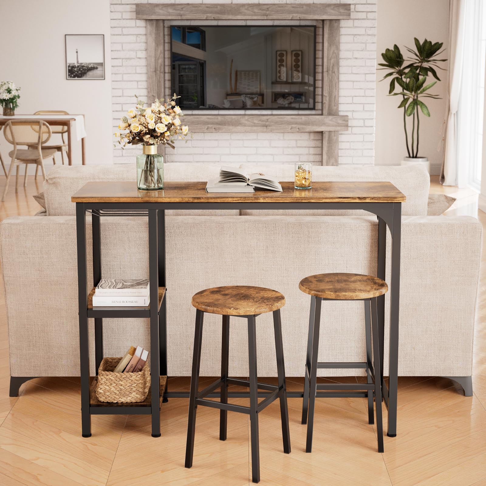 - Kompaktes Design: Die beiden Barhocker lassen sich bei Nichtgebrauch vollständig und platzsparend unter den Tisch schieben – ideal für die optimale Nutzung kleiner Räume.