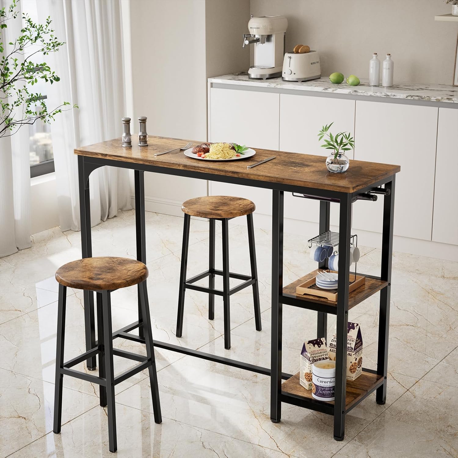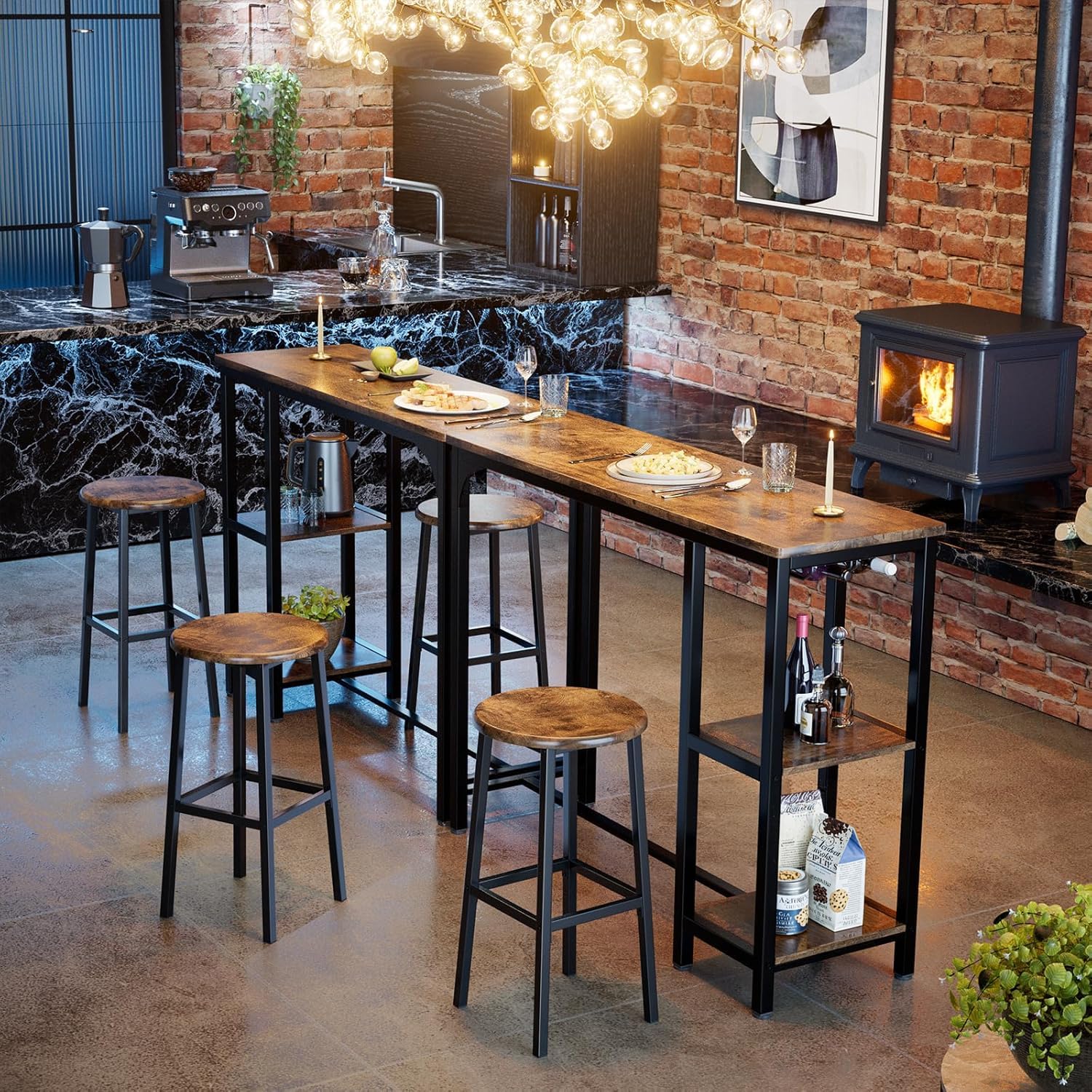 Verleihen Sie Ihrem Zuhause mit diesem stilvollen Bartisch-Set im Retro-Look einen Hauch von urbanem Flair. Es kombiniert Funktionalität mit einem ansprechenden Industrie-Design und ist die perfekte Lösung für kompakte Wohnbereiche.