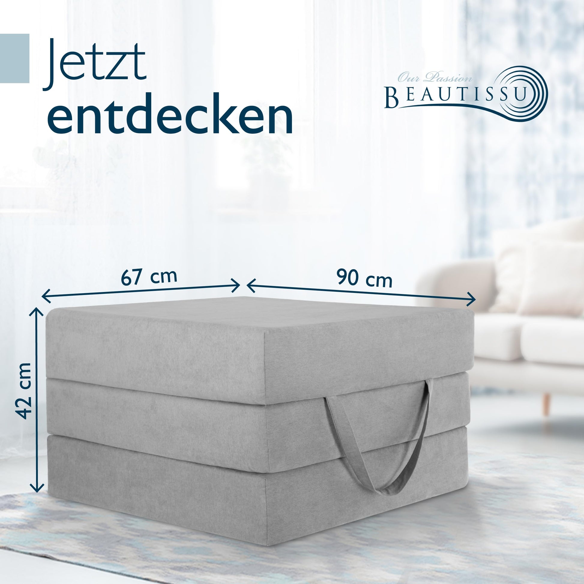 Beautissu Premium XL Klappmatratze Gästebett Visco 90x200cm Grau