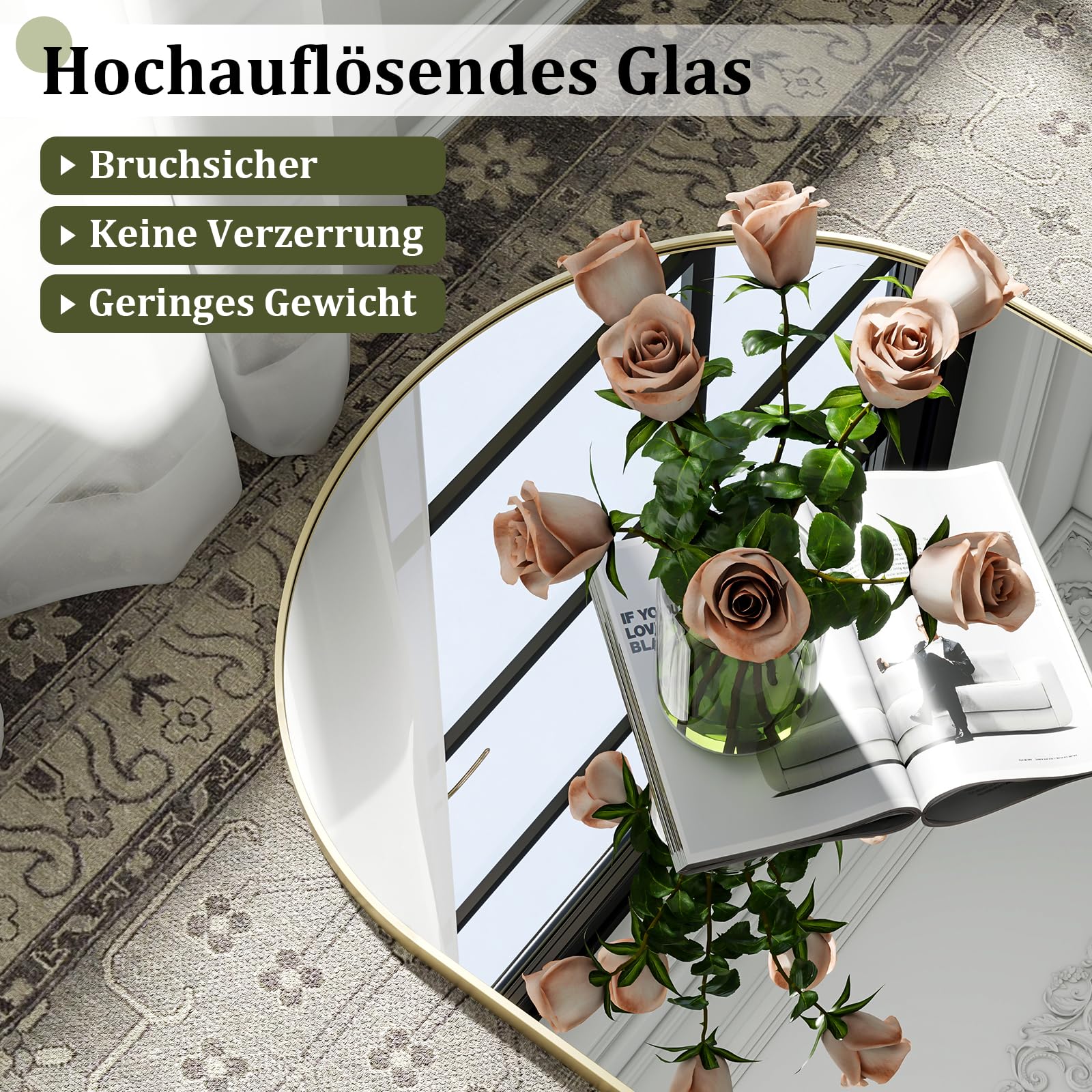 - Hochauflösendes Spiegelbild: Gefertigt aus gehärtetem ShatterVue-Sicherheitsglas für eine klare, verzerrungsfreie Reflexion in HD-Qualität.