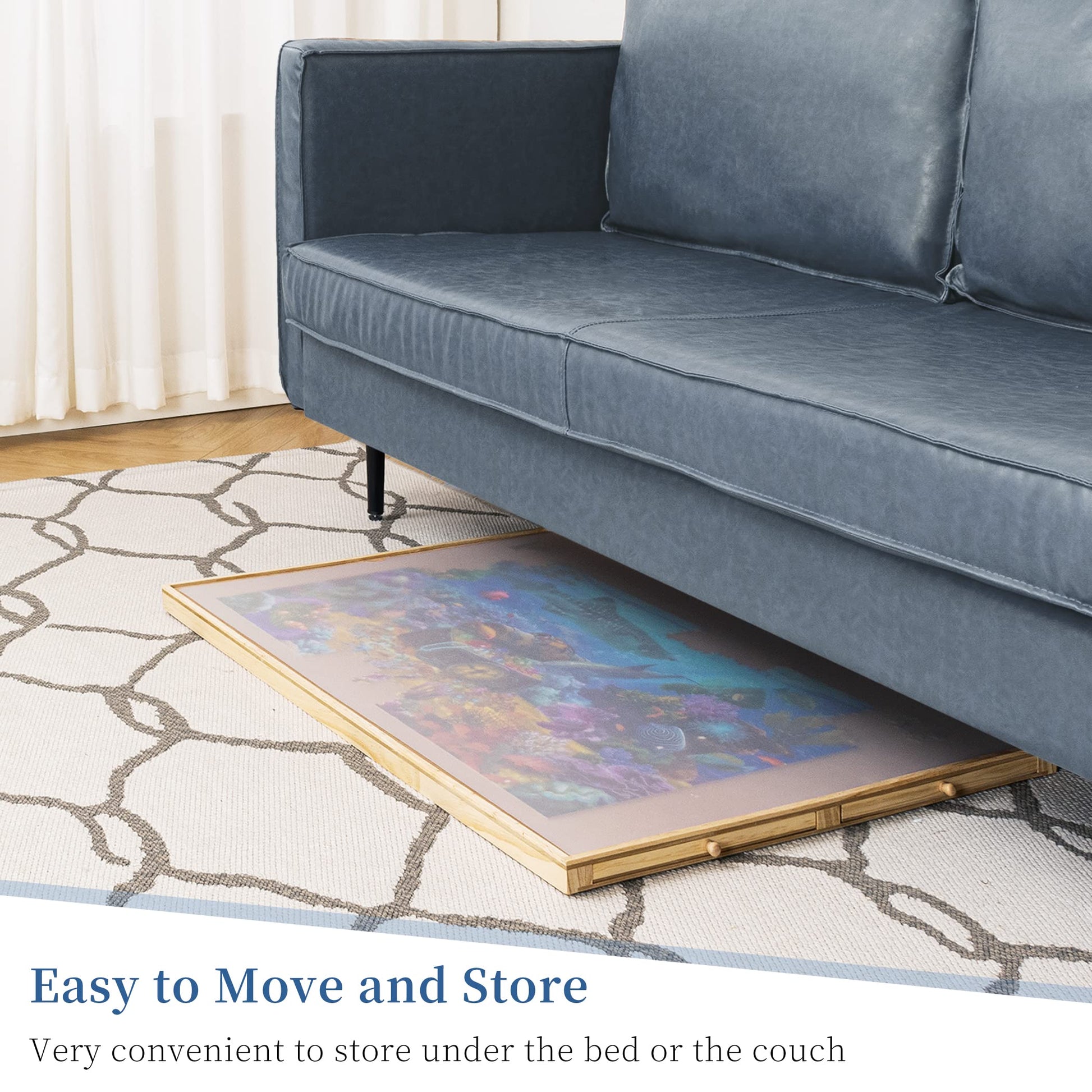 Die vier ausziehbaren Schubladen bringen System in Ihr Puzzle-Projekt. Sortieren Sie Teile nach Farbe oder Form und verstauen Sie sie sicher, wenn Sie eine Pause einlegen. Das leichte Design ermöglicht es Ihnen, das Puzzle-Brett mühelos zu transportieren. Benötigen Sie den Tisch für etwas anderes? Kein Problem. Legen Sie einfach die Abdeckung auf und schieben Sie das gesamte Brett platzsparend unter das Sofa oder Bett.