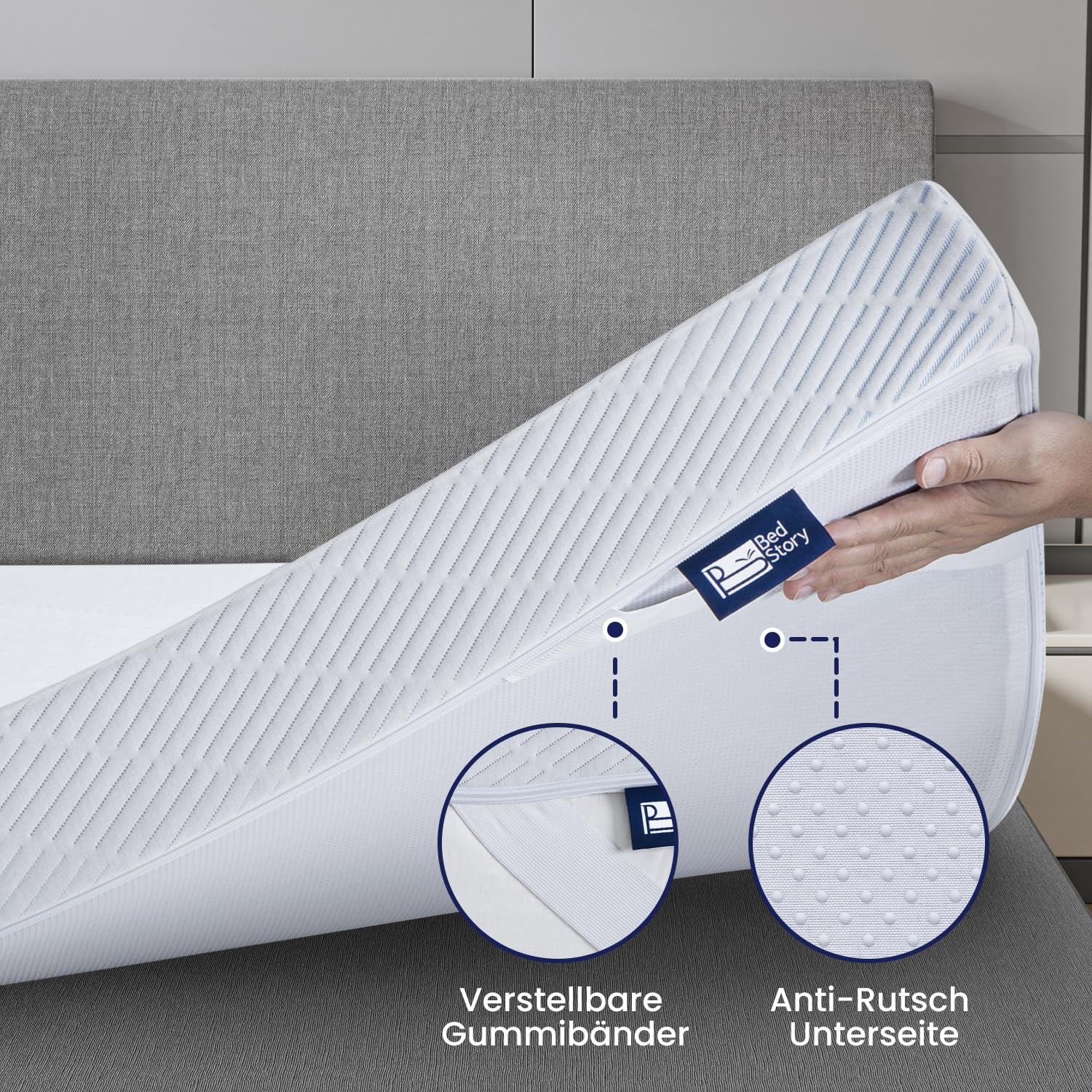 Ja, der atmungsaktive Bezug ist mit einem Reissverschluss ausgestattet, sodass Sie ihn leicht abnehmen und in der Waschmaschine waschen können. Dies sorgt für eine dauerhaft hygienische und frische Schlafumgebung und erleichtert die Pflege.