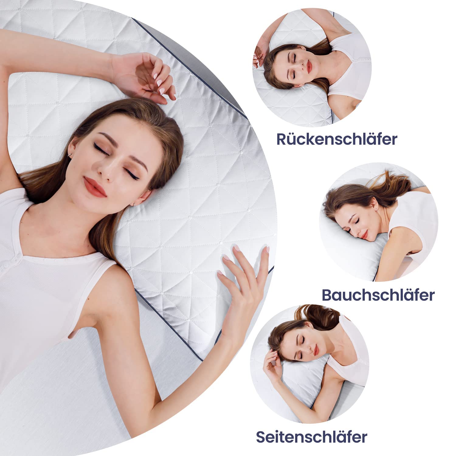 Die Kissen sind universell für alle Schlafpositionen konzipiert – egal ob Sie Seiten-, Rücken- oder Bauchschläfer sind. Durch die anpassbare Füllmenge bieten sie für jeden Schlaftyp die optimale Balance aus Weichheit und Stützkraft zur Vorbeugung von Nackenverspannungen.