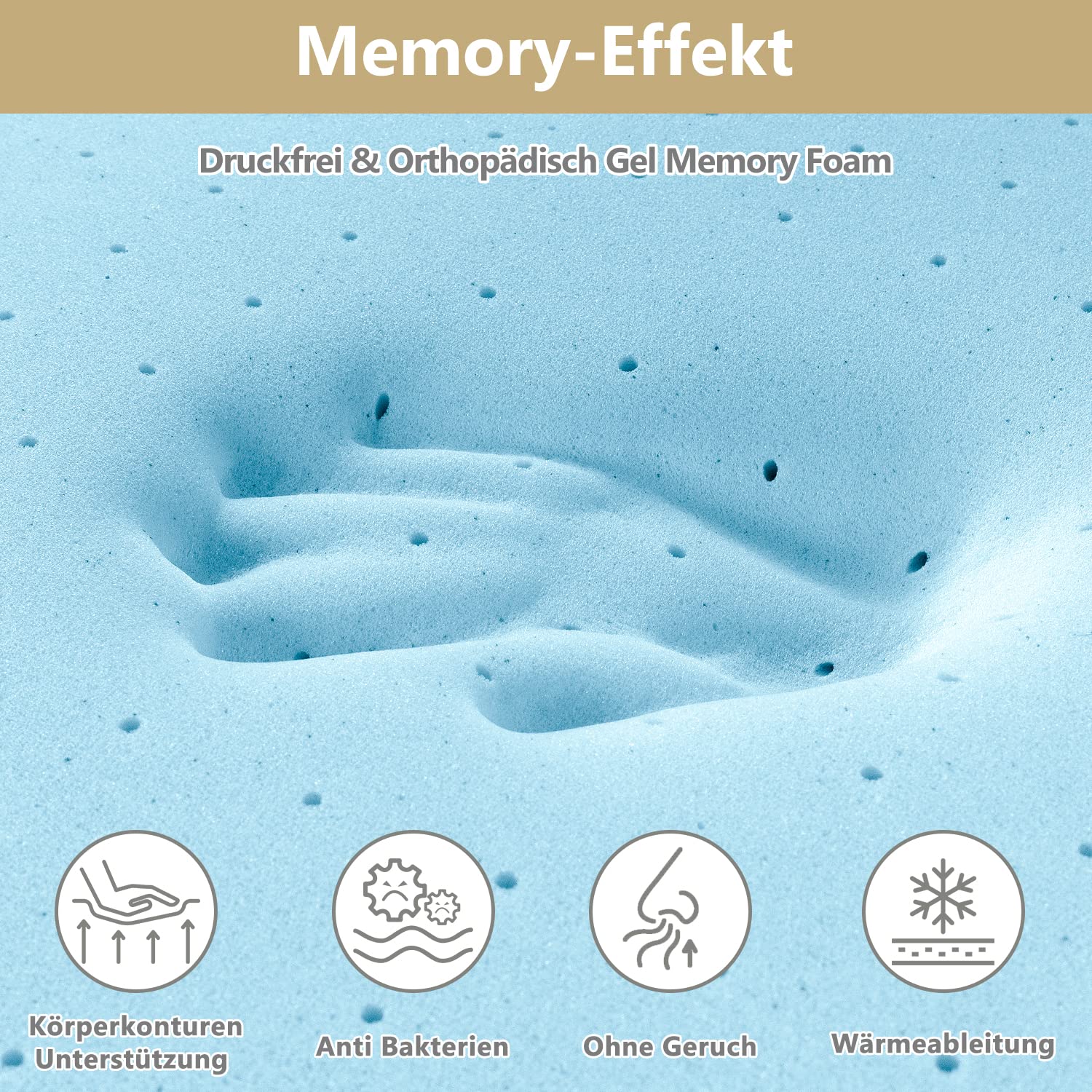 Der spezielle Gel-Memory-Foam sorgt für eine optimale Druckentlastung an empfindlichen Körperstellen wie Schultern, Rücken und Hüfte. Dies kann dazu beitragen, Verspannungen zu lindern und eine ergonomisch korrekte Schlafposition zu fördern, was zu einer süssen Nachtruhe führt.