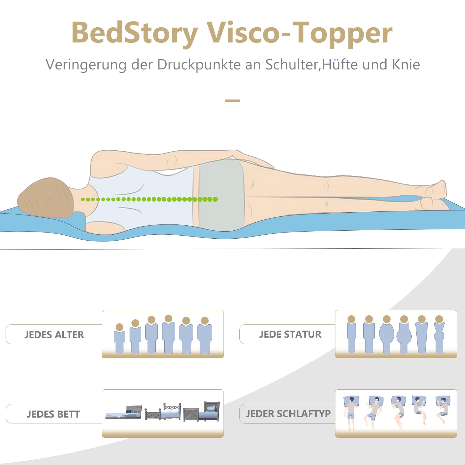 BedStory Matratzentopper Gel Memory Foam - 180x200cm 7,5cm H2/H3