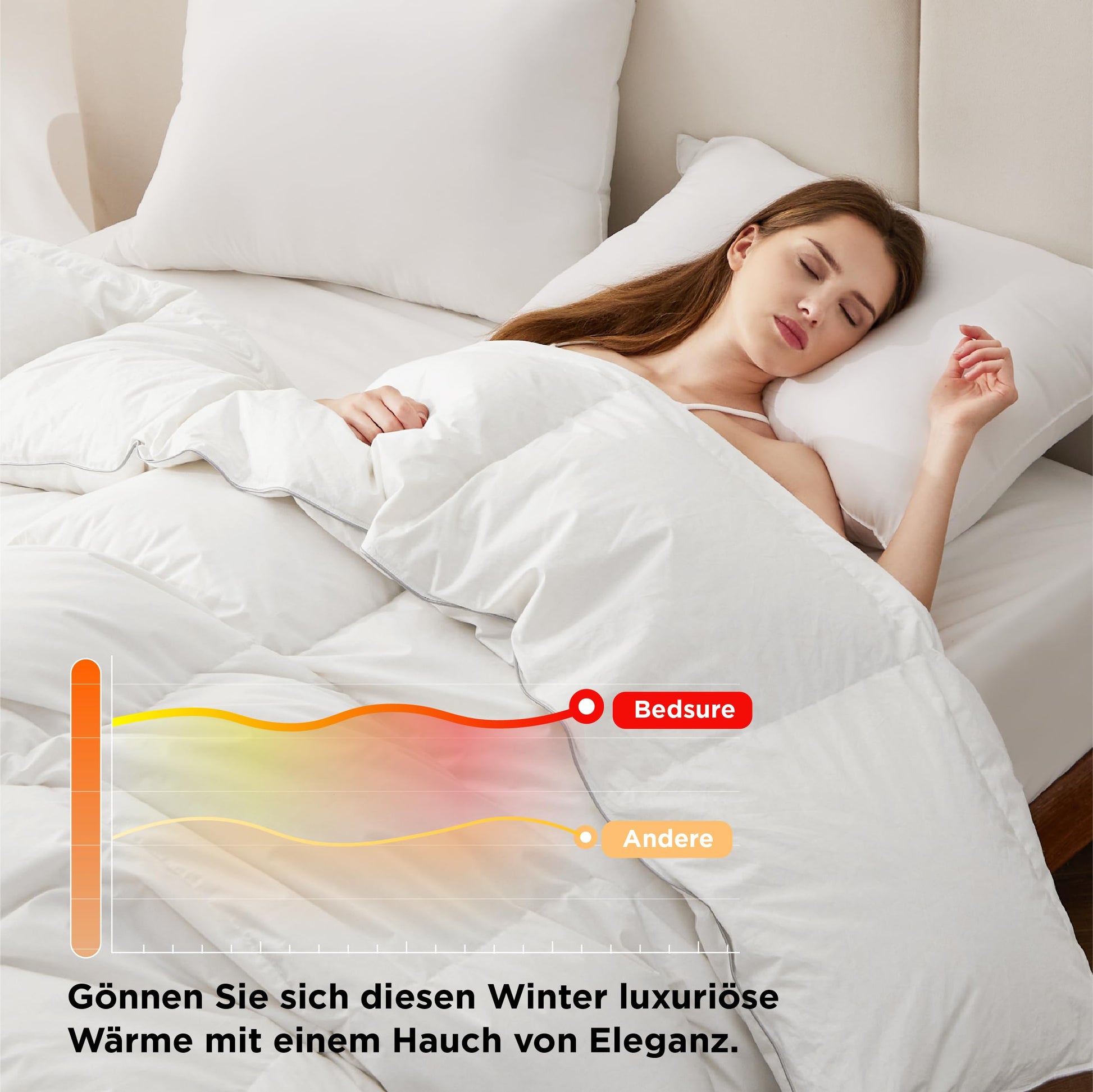 - Hochwertige Füllung: Eine Komposition aus 90% Daunen und 10% Federn für maximale Wärmeisolation.