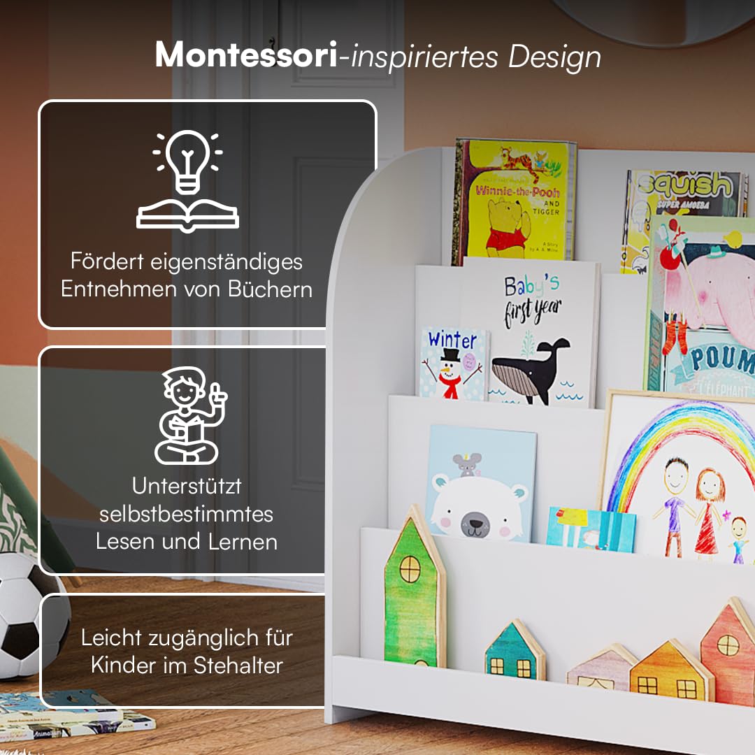 Bellabino Baru Montessori Kinderbücherregal Kinderzimmer - Weiss