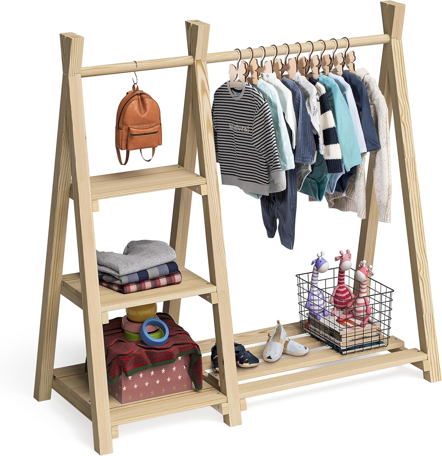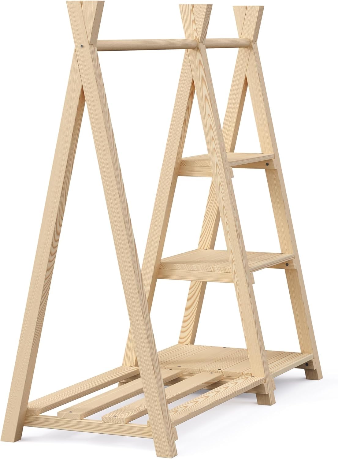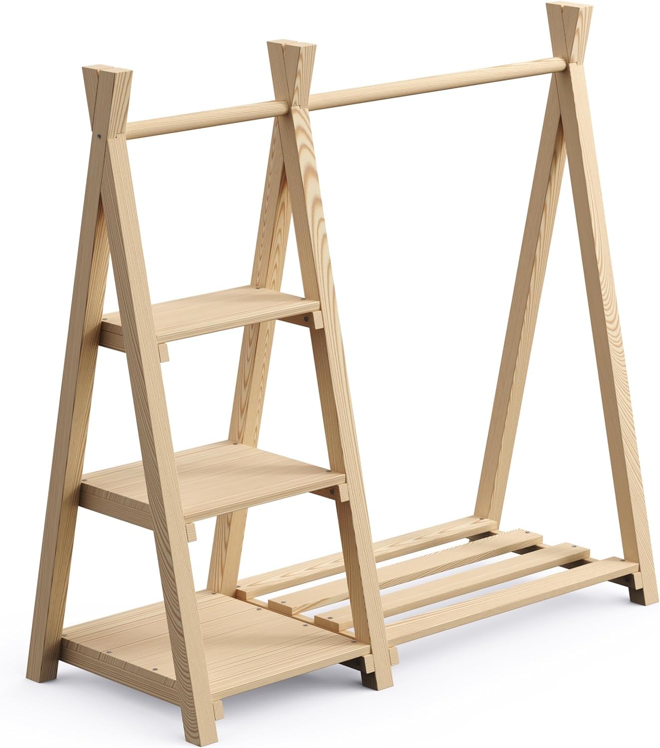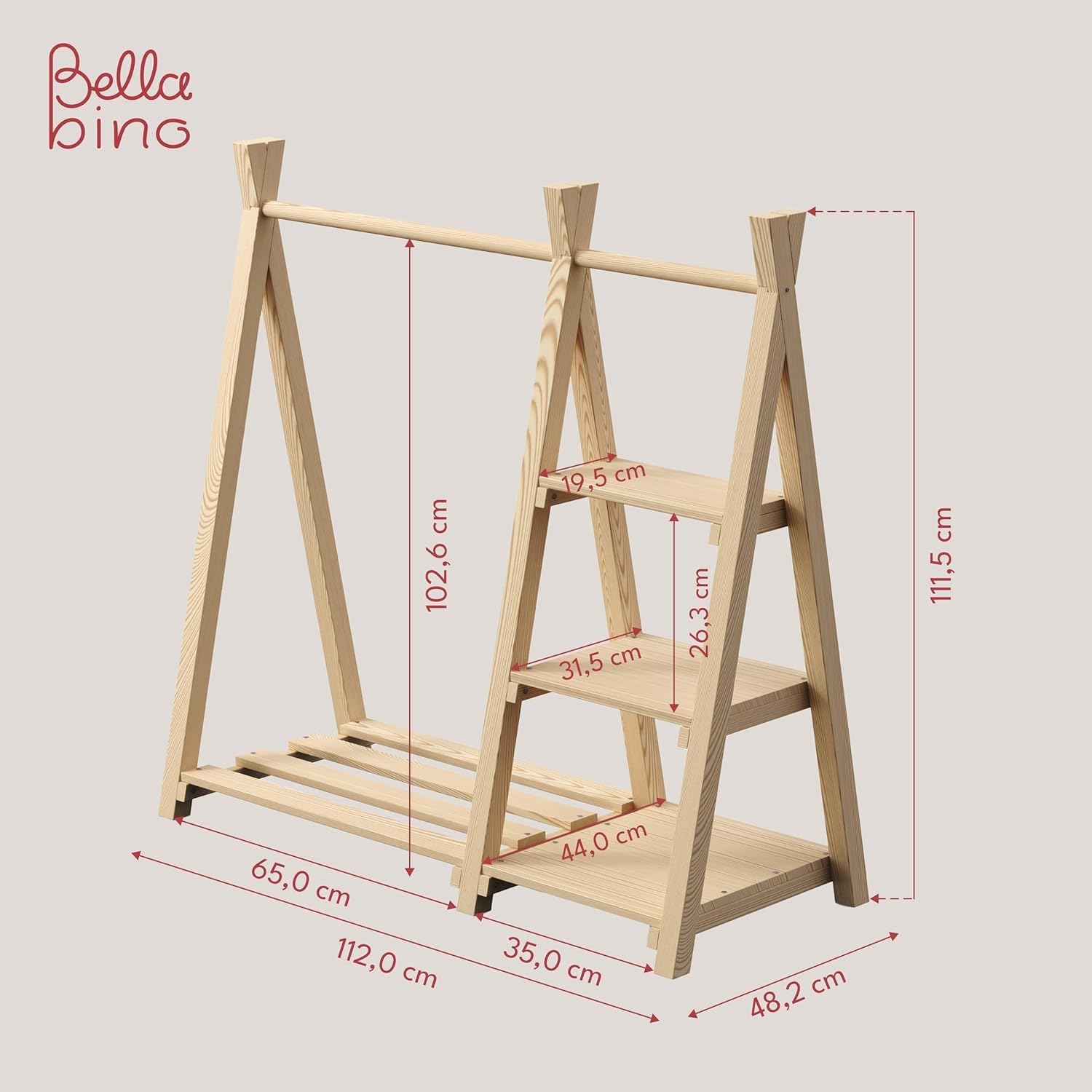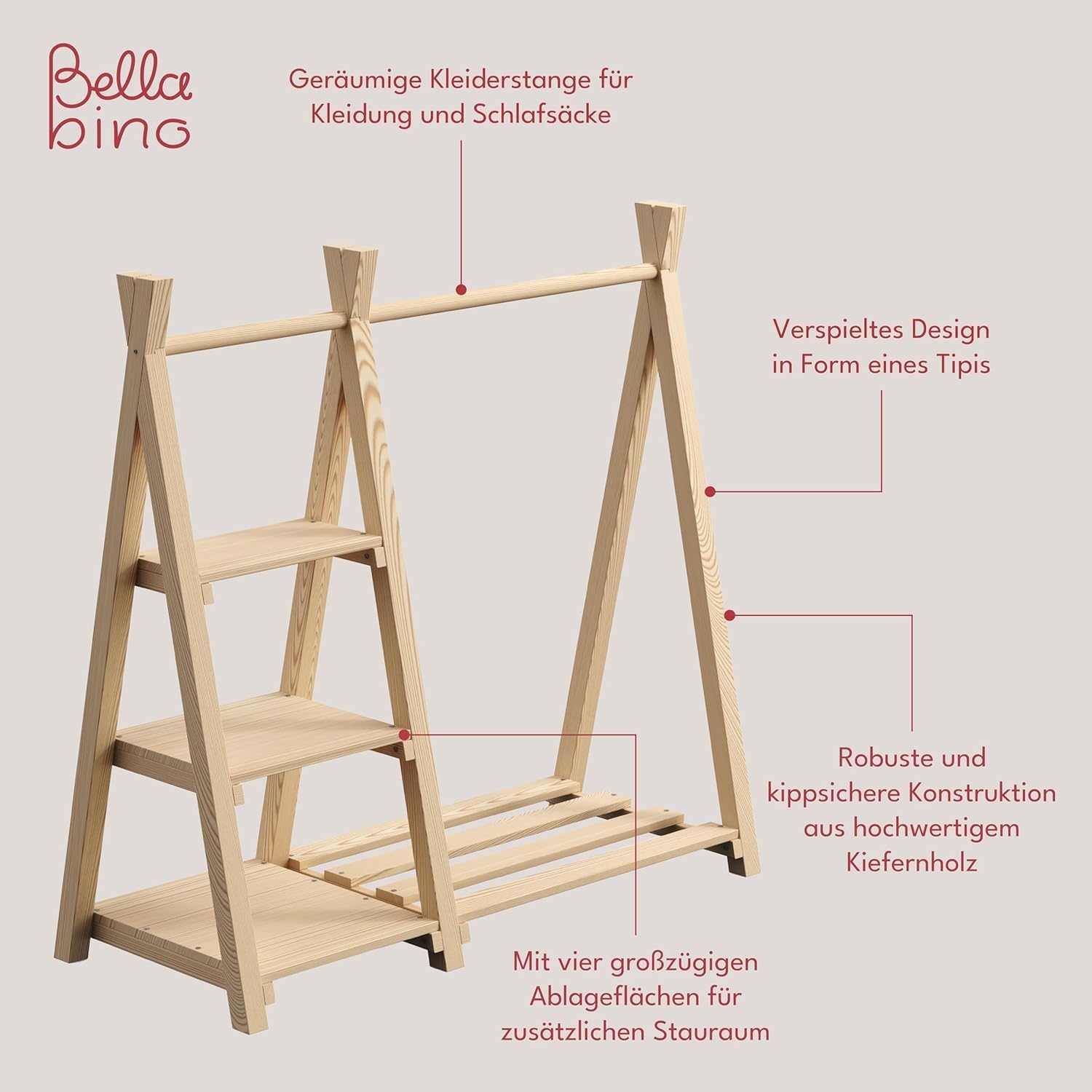 Bellabino Ryck Kleiderstange Kinder - Massivholz Natur 4 Ablagen