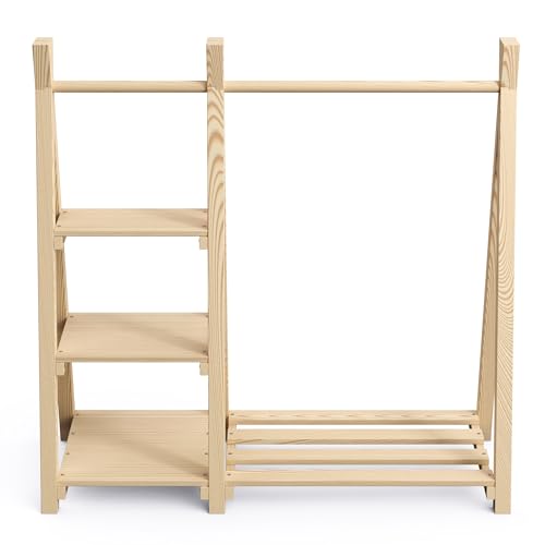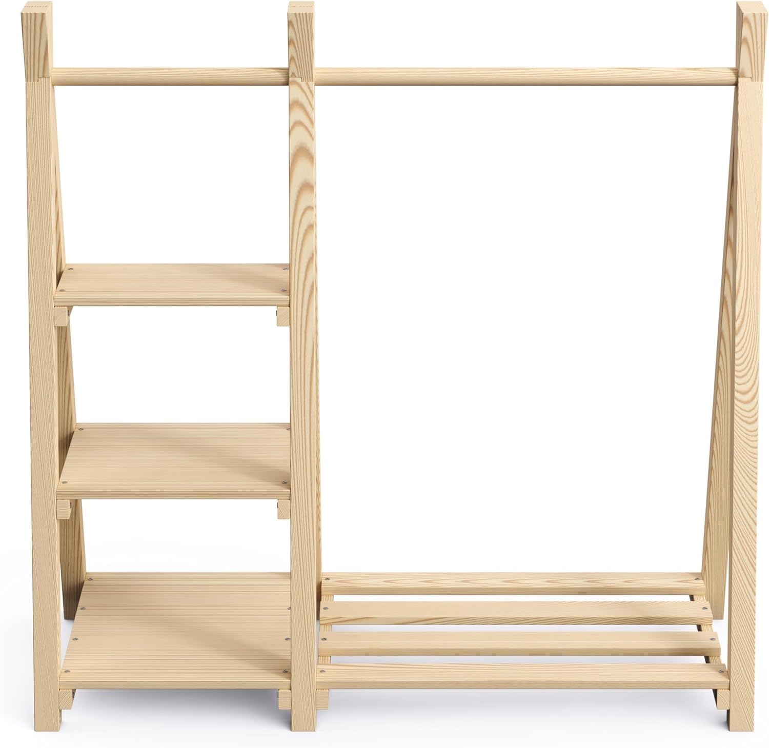 Dank der durchdachten Aufteilung mit Kleiderstange und zusätzlichen Fächern ist alles Nötige stets griffbereit. So finden nicht nur Kleidungsstücke, sondern auch Schuhe und Accessoires ihren festen Platz. Die Verarbeitung aus massivem Naturholz macht den Kleiderständer zu einem sicheren und langlebigen Möbelstück, das den täglichen Anforderungen im Kinderzimmer problemlos standhält.