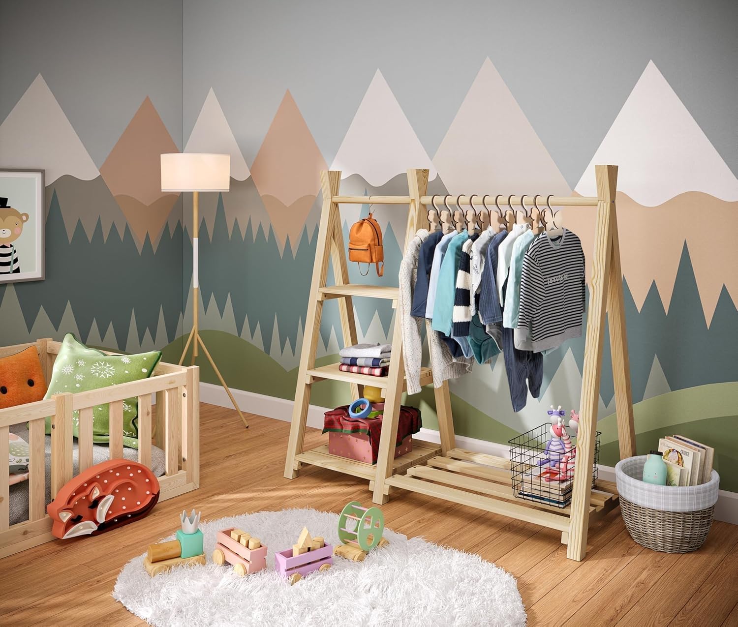 Die Kleiderstange ist nach Montessori-Prinzipien konzipiert und eignet sich ideal für Kleinkinder und Vorschulkinder im Alter von ca. 2 bis 6 Jahren. Die kindgerechte Höhe ermöglicht es ihnen, selbstständig auf ihre Kleidung zuzugreifen und fördert so die Eigenständigkeit.