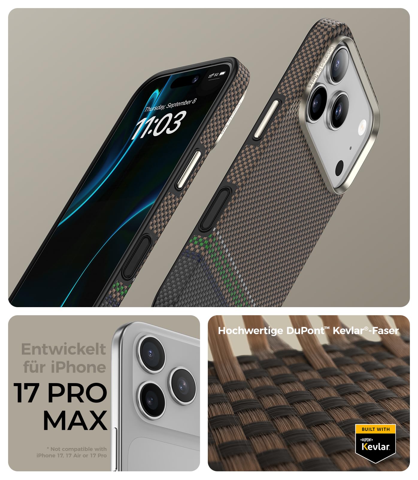 Verleihen Sie Ihrem iPhone 17 Pro Max einen Schutz, der in Sachen Material und Funktionalität neue Massstäbe setzt. Diese Hülle kombiniert Hightech-Fasern mit durchdachten Features für den anspruchsvollen Alltag.