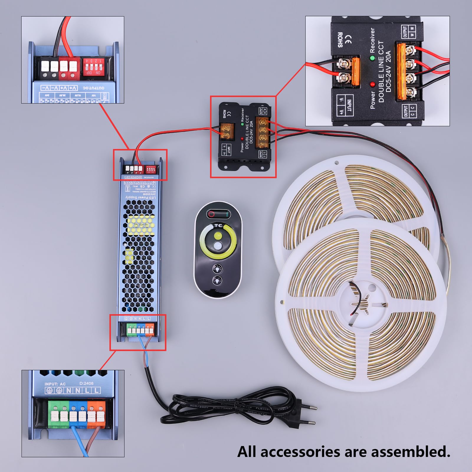 - Komplettes Set: Beinhaltet zwei 10-Meter-Rollen COB LED-Streifen, ein passendes 24V-Netzteil sowie eine intuitive PWM-Fernbedienung mit einer Reichweite von bis zu 20 Metern. Alle Komponenten sind für eine einfache Inbetriebnahme vorkonfiguriert.