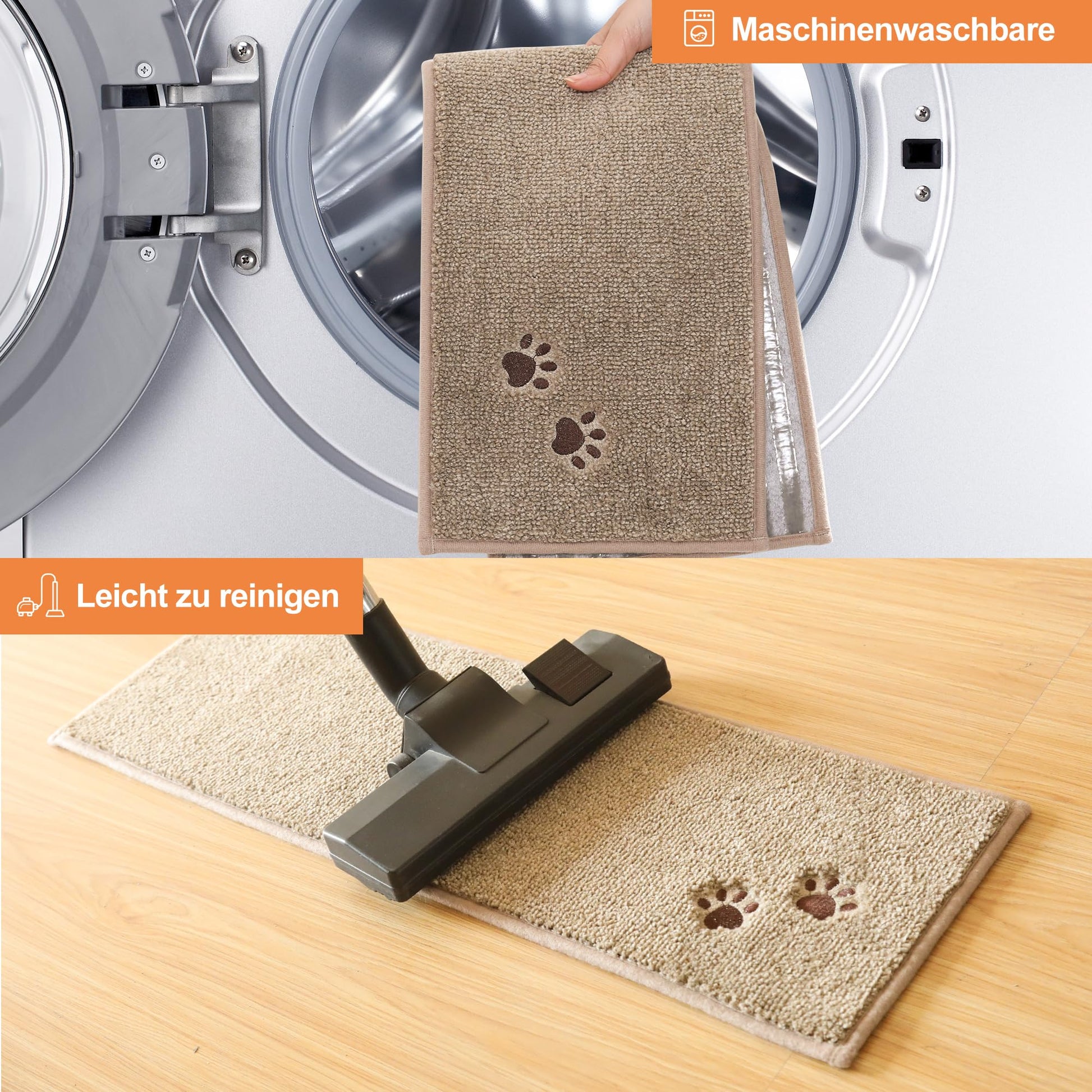 - Mühelose Reinigung: Staub, Schmutz und Tierhaare können einfach mit dem Staubsauger entfernt werden. Für eine gründlichere Reinigung sind die Matten zudem maschinenwaschbar und behalten auch nach dem Waschen ihre Form und Farbe.