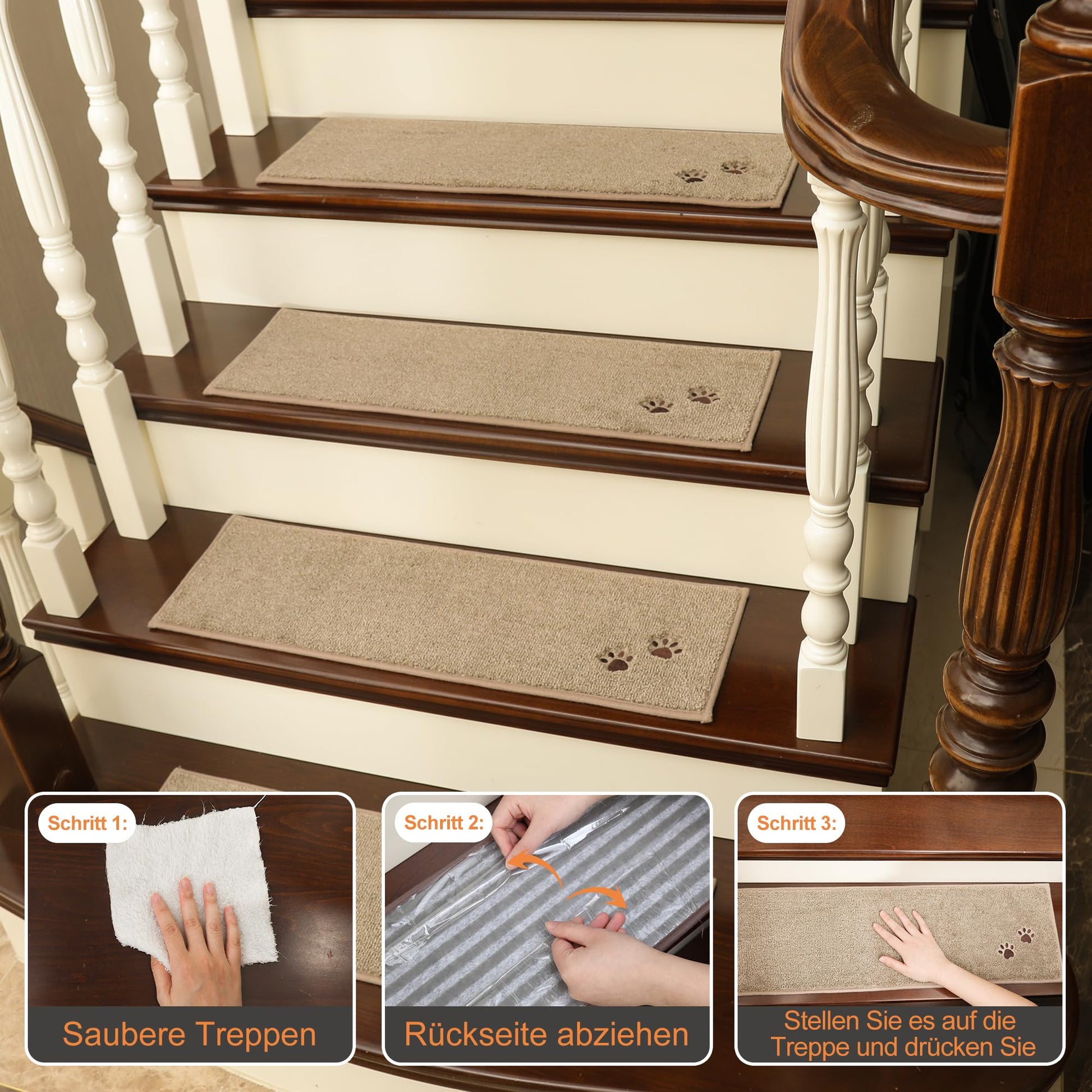Die unkomplizierte Handhabung – vom Anbringen bis zur Reinigung – spart Ihnen wertvolle Zeit und Mühe. Da die Matten wiederverwendbar sind und ohne klebrige Rückstände auskommen, bieten sie eine flexible und schonende Lösung für Ihre Treppe.