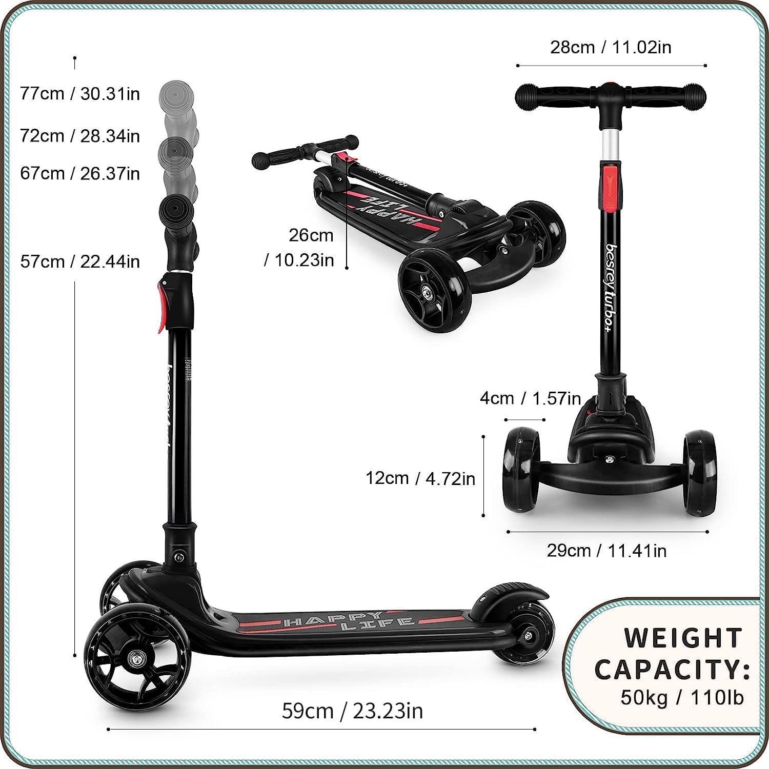 besrey Dreirad Kinder Roller – Faltbar, mit LED Leuchträdern