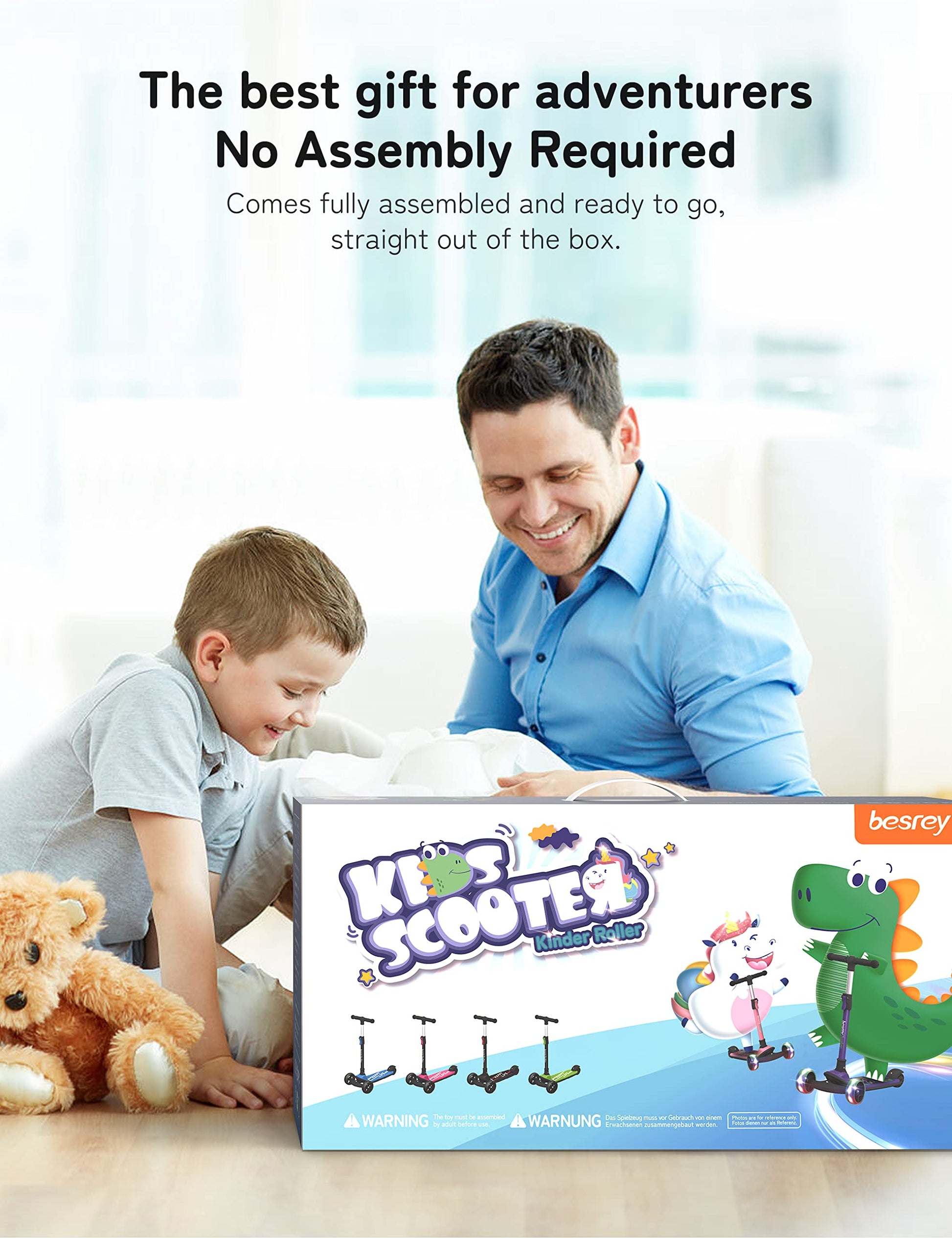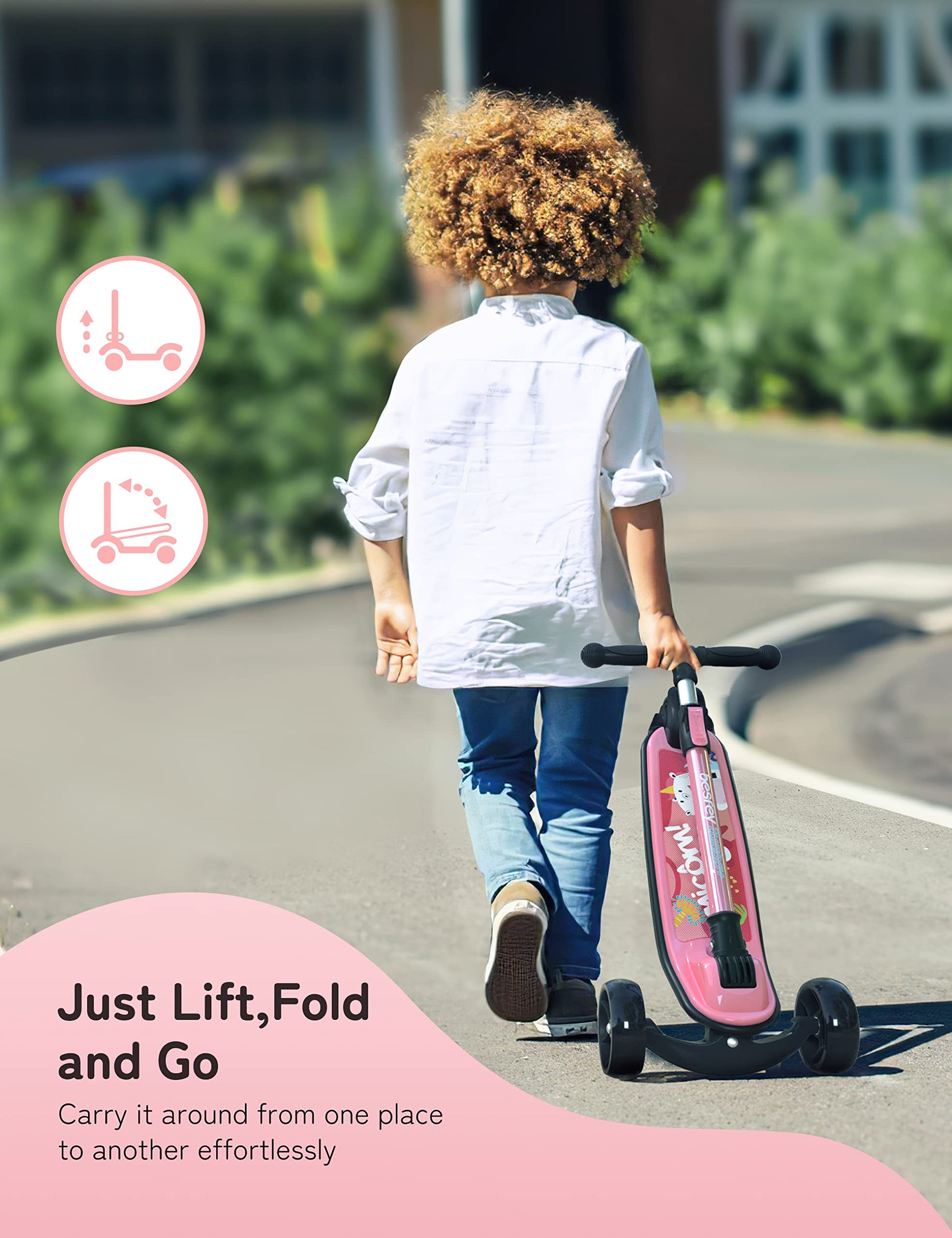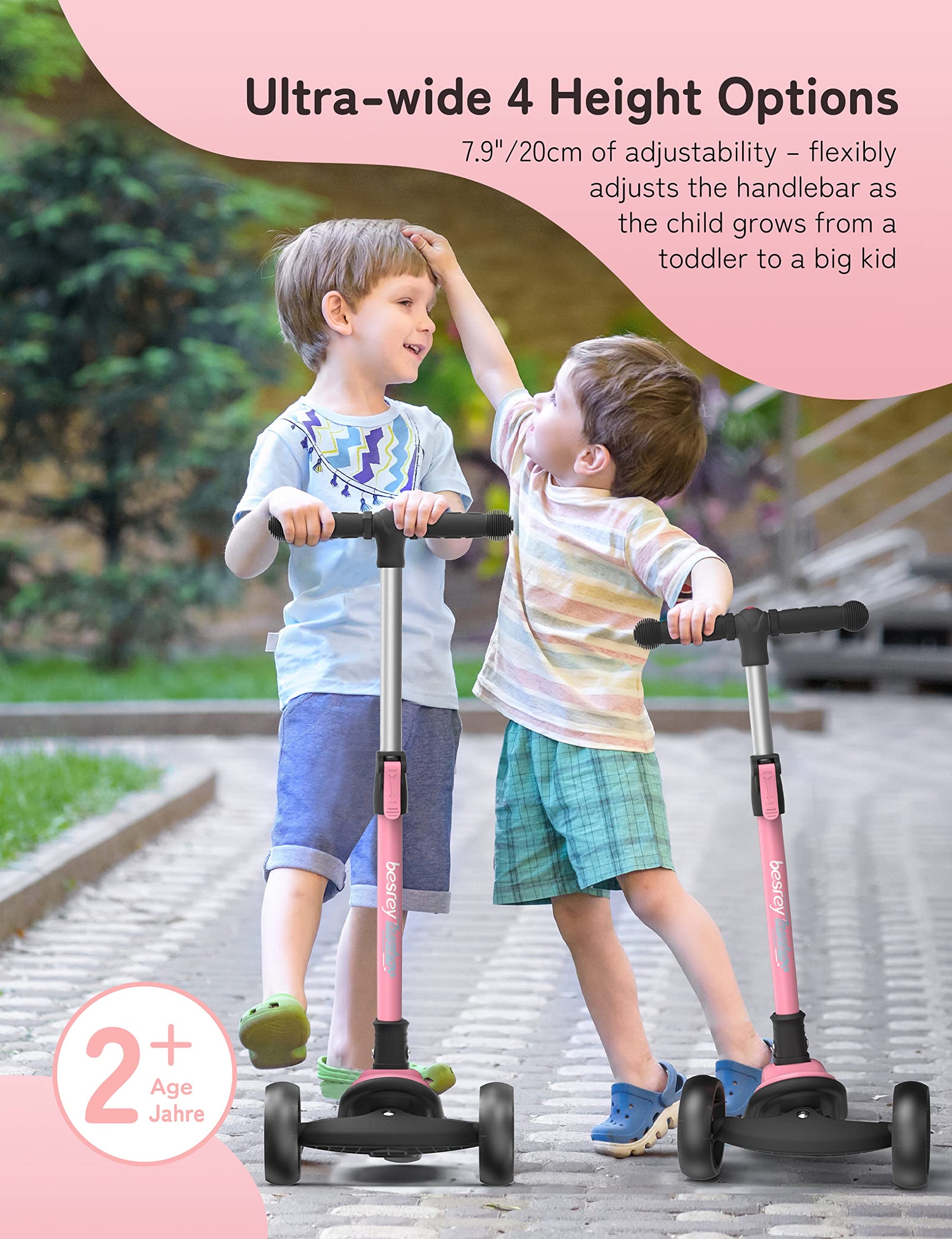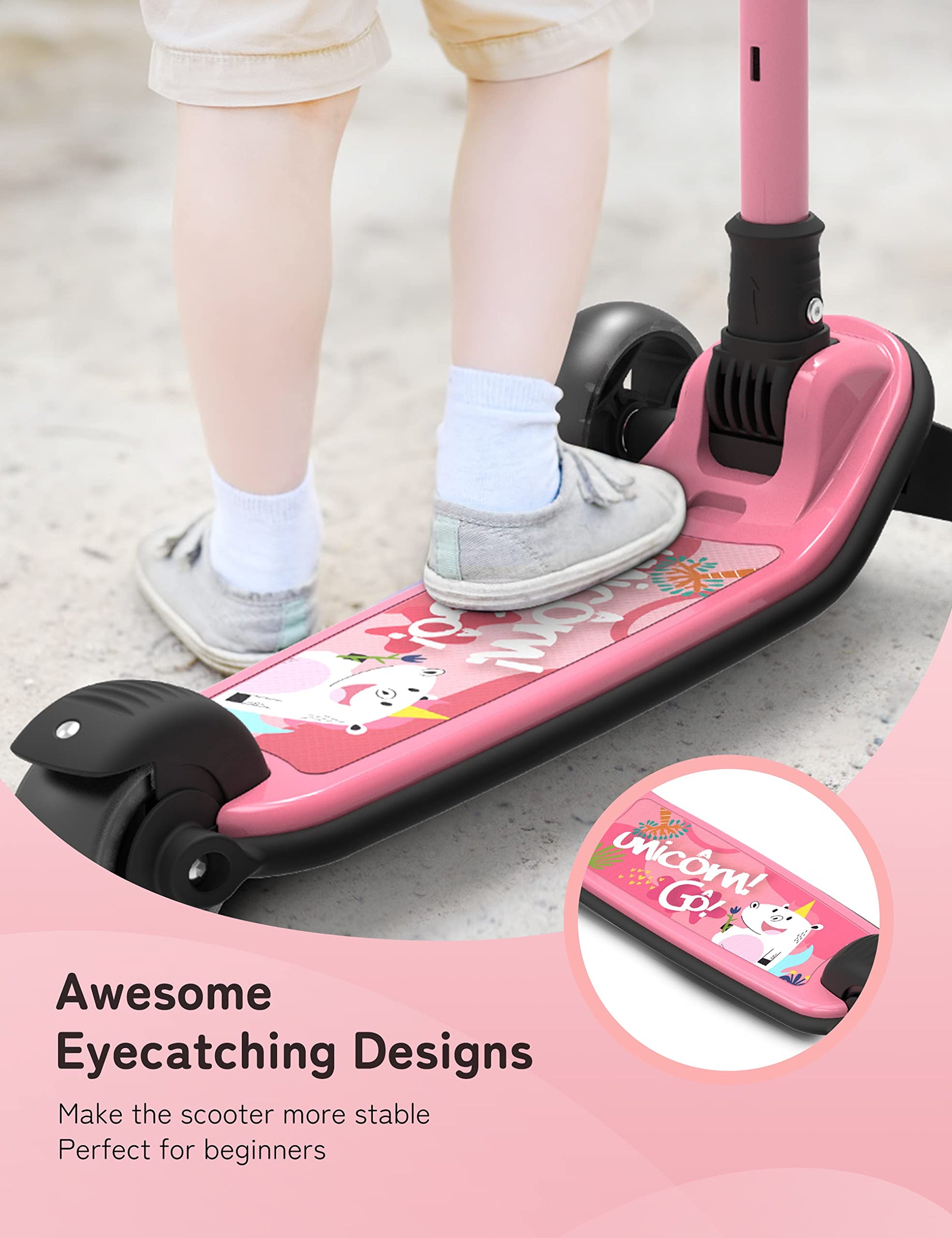 besrey Kinder Roller höhenverstellbar faltbar LED-Räder - Einhorn Rosa