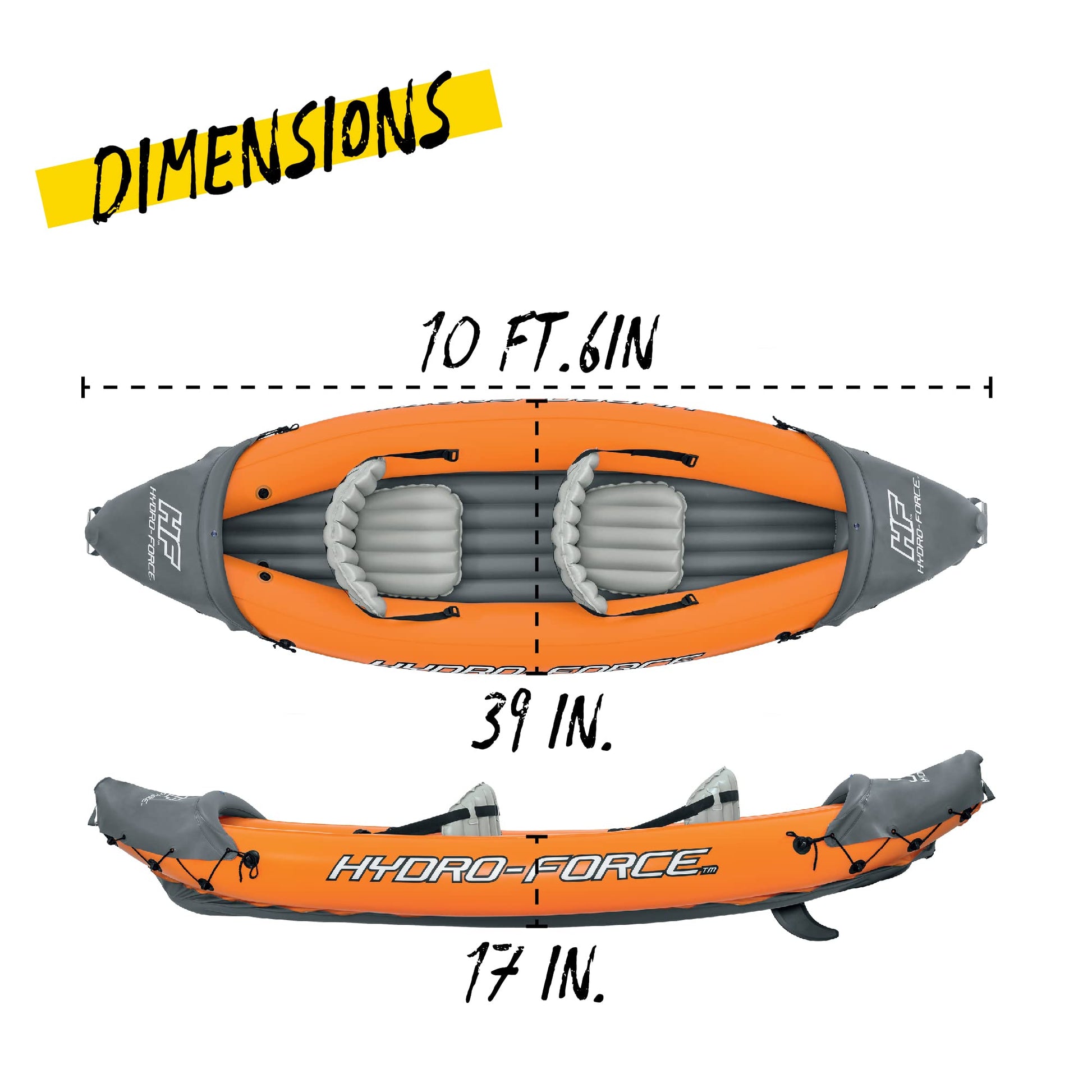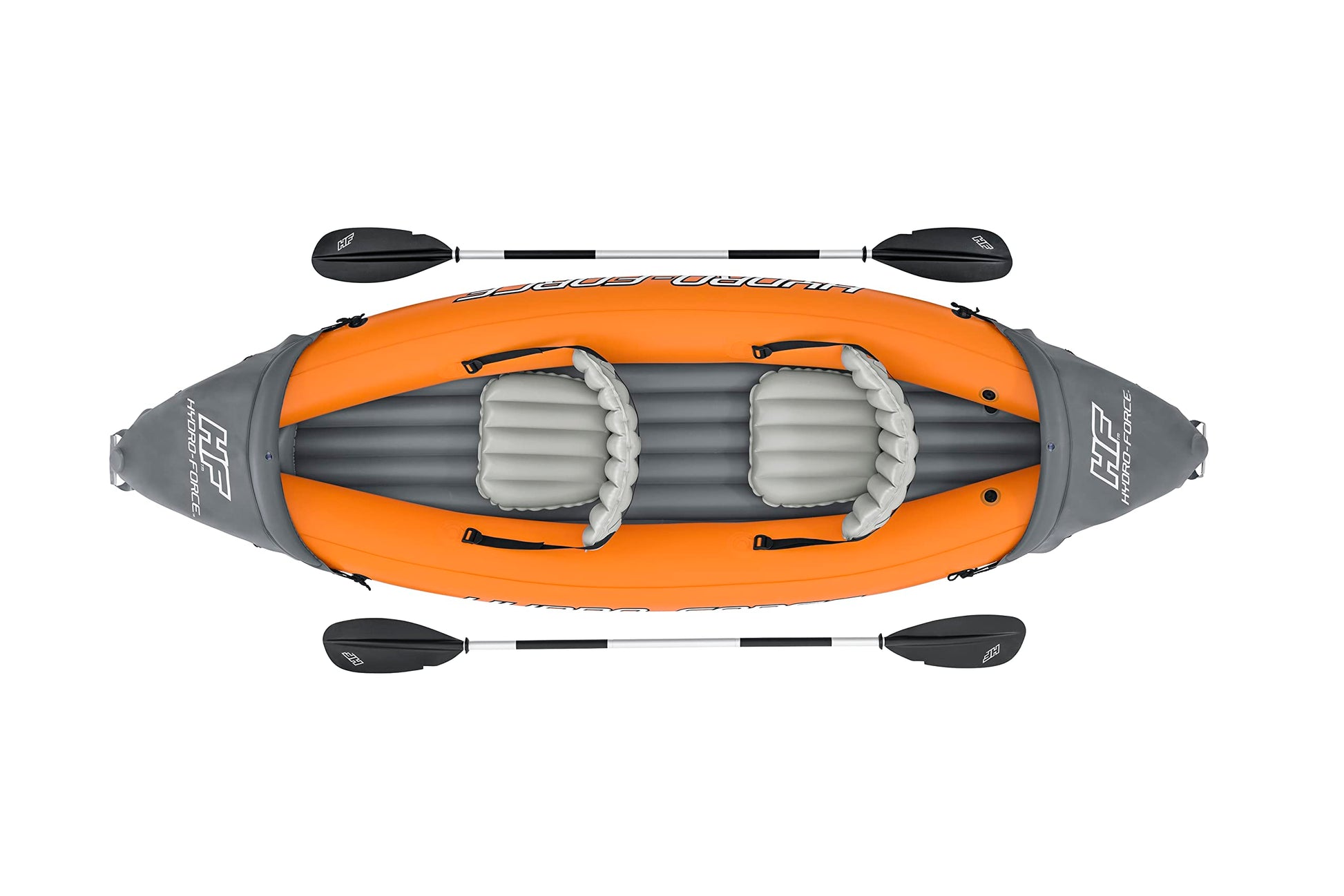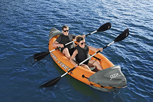 - Komplett-Set: Beinhaltet 1 Kajak, 2 Aluminiumpaddel, 1 Air Hammer™ Handpumpe, 1 Tragetasche und 1 Reparaturflicken.