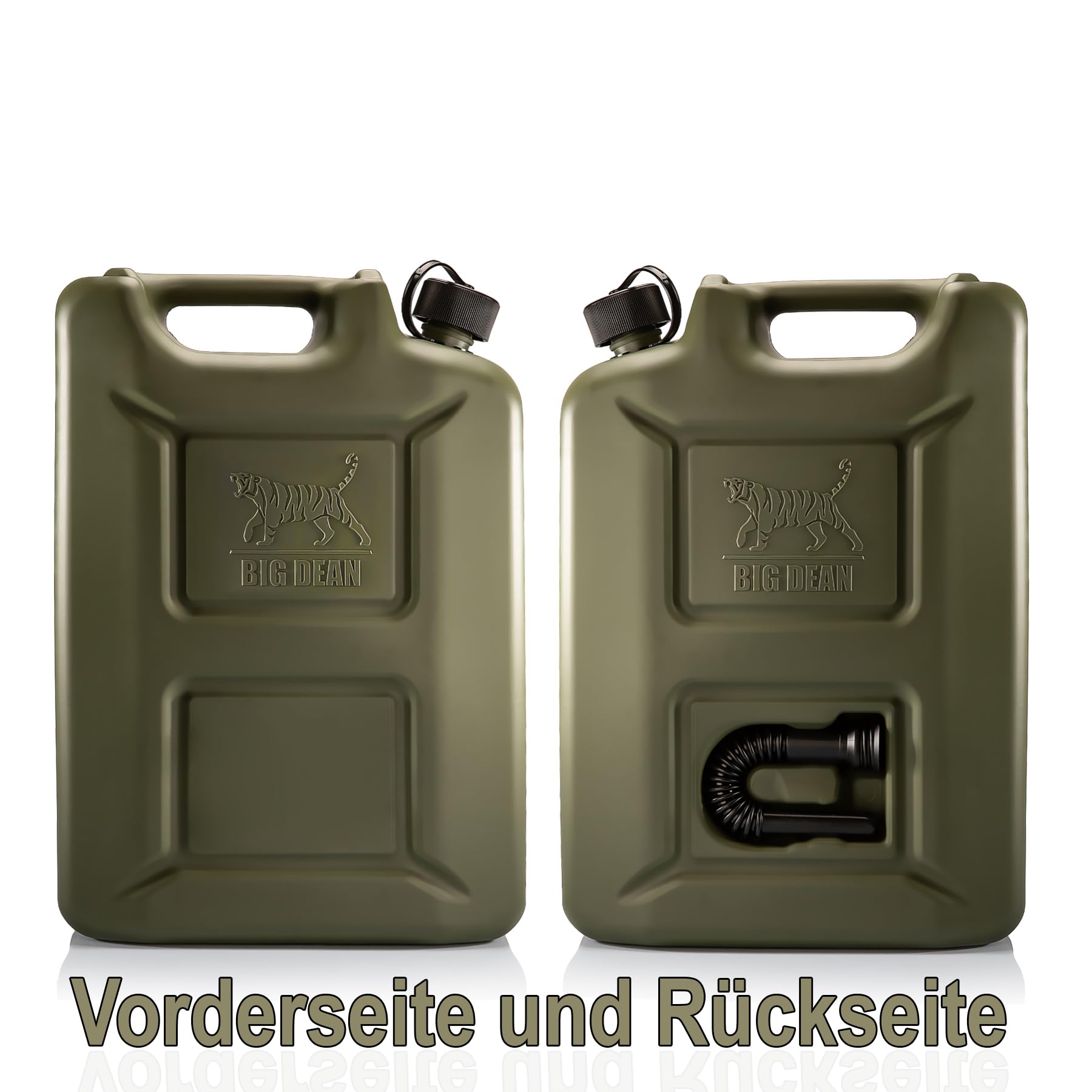 Das Set beinhaltet fünf robuste 20-Liter-Kraftstoffkanister in Olivgrün. Jeder einzelne Kanister wird mit einem dazugehörigen, flexiblen Ausgussrohr und einem Sicherheitsverschluss geliefert, sodass Sie sofort einsatzbereit sind.
