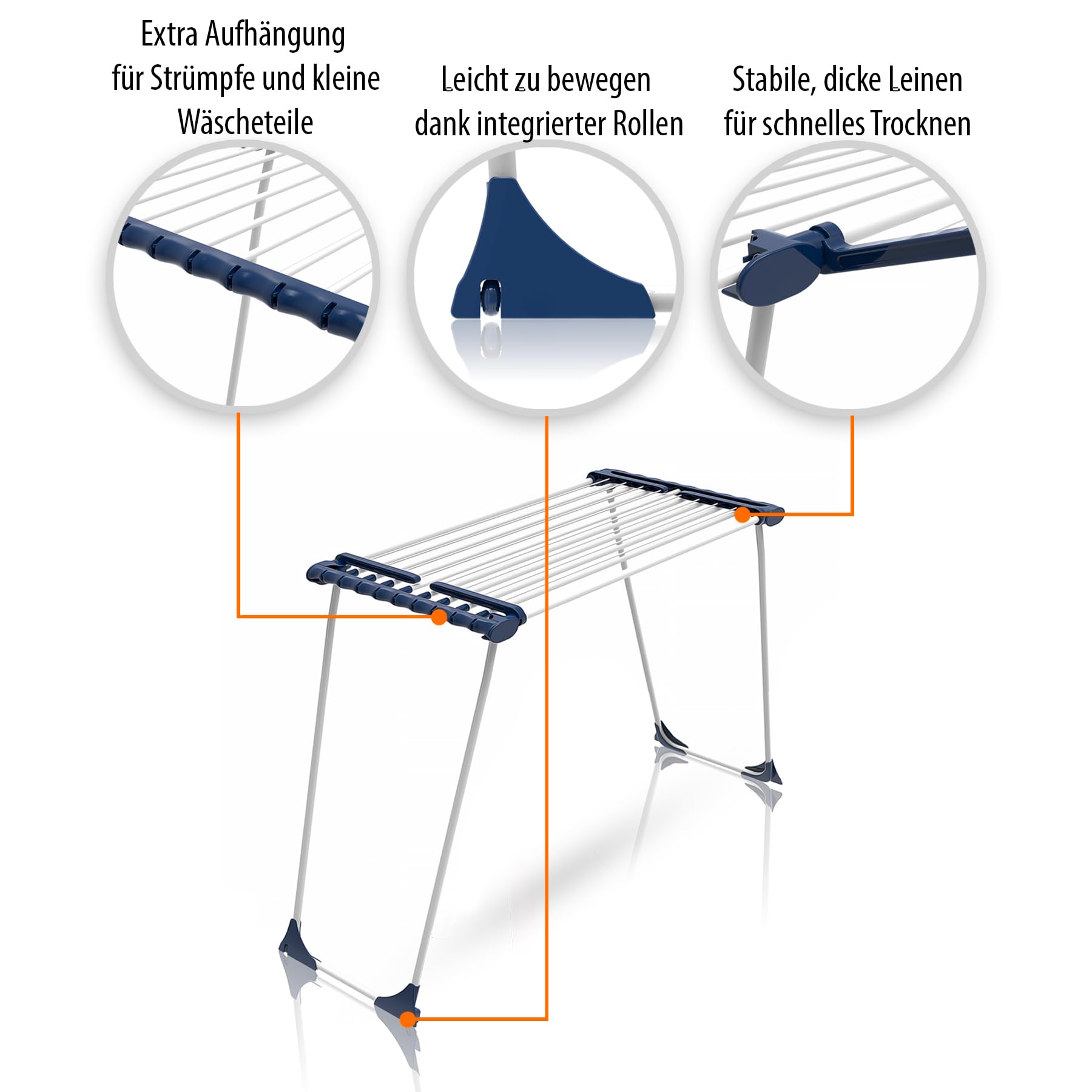 - Grosszügige Trockenkapazität: Bietet mit insgesamt 28 Metern Leinenlänge aussergewöhnlich viel Platz für die Wäsche einer ganzen Familie.