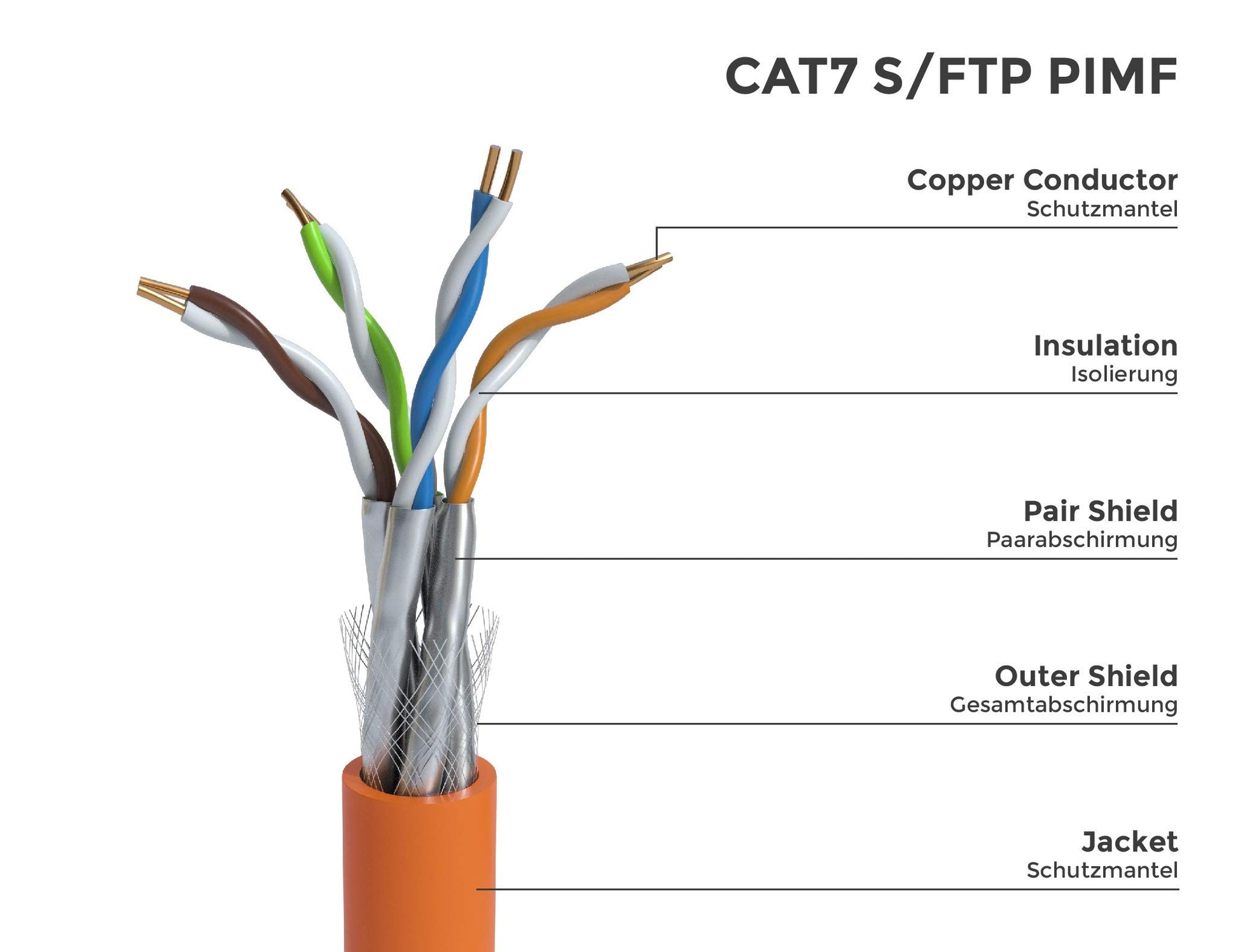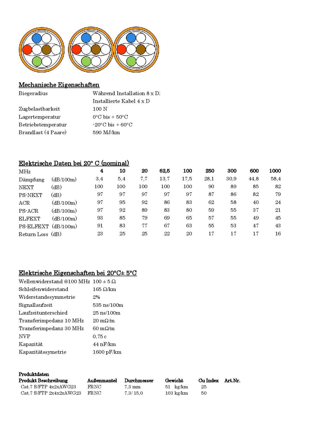 - Kabeltyp: CAT 7 Installationskabel, S/FTP (PiMF)